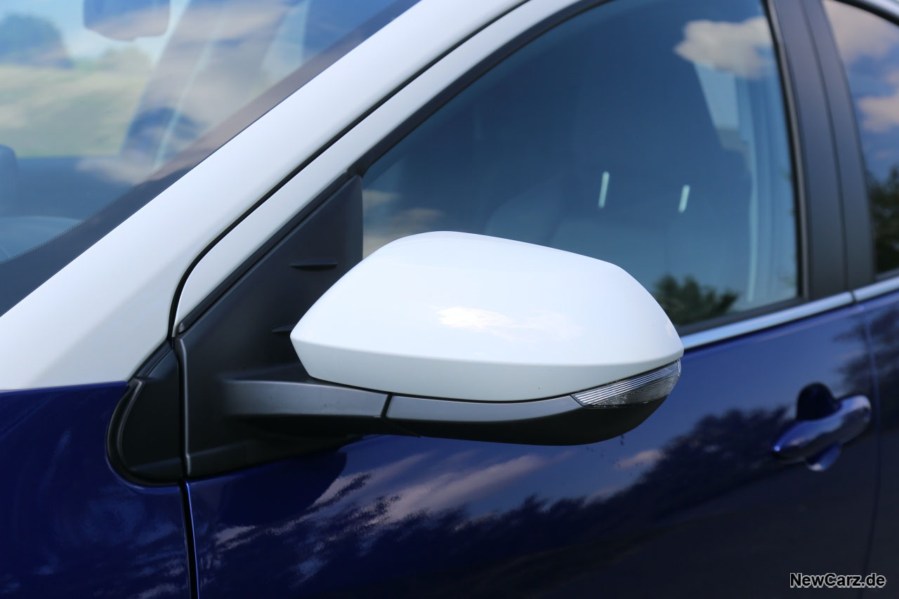 Unser Testwagen fuhr in einer sogenannten Multi-Tone Lackierung namens Lush Blue/Weiß und als „Select“ ausgestattet auf unser Testgelände.