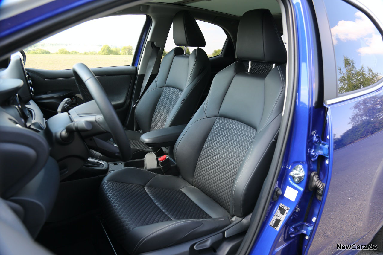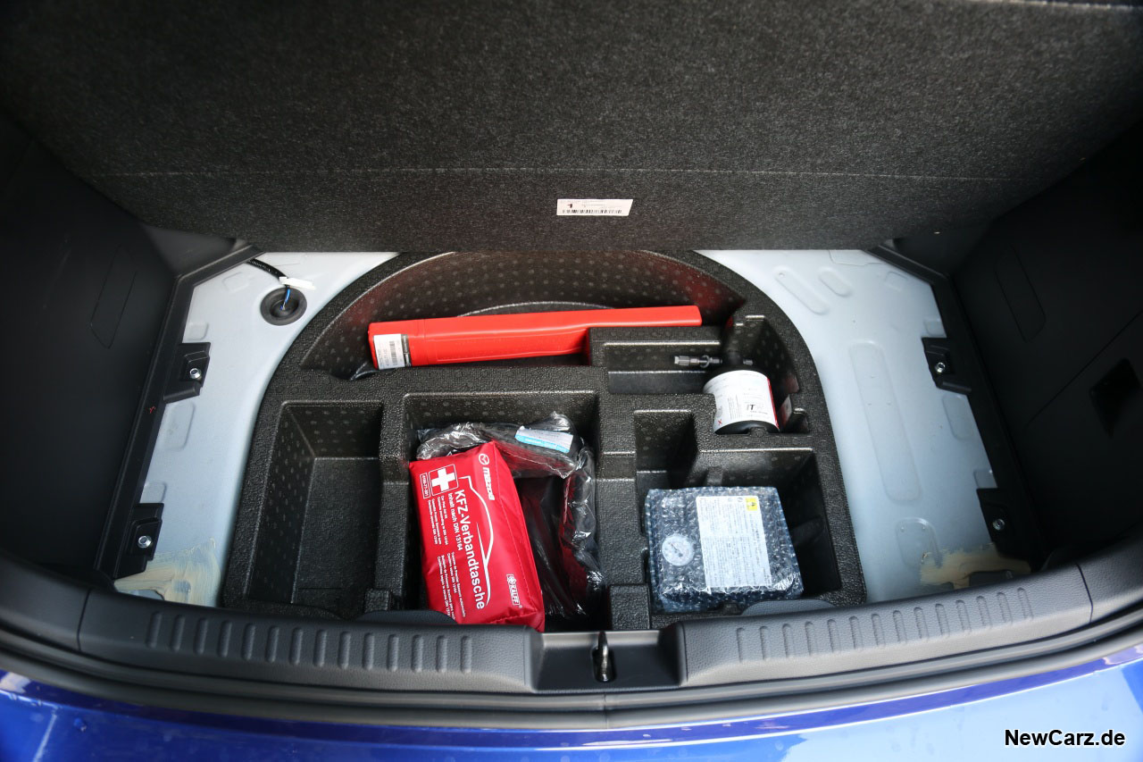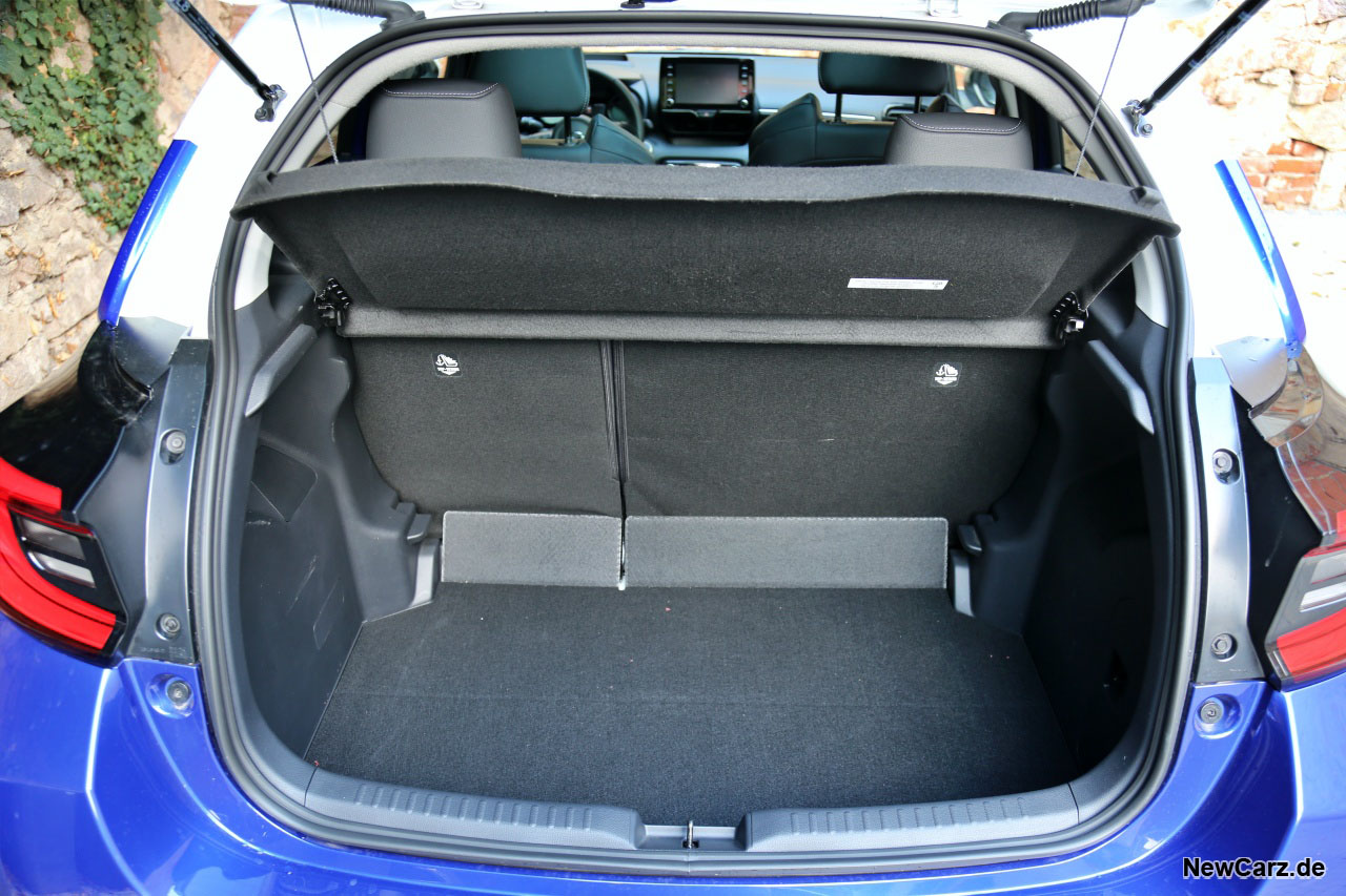 Genauso – welch Überraschung – setzen sich die Analogien im Innenraum des Kleinwagens fort. Dadurch bietet auch der Mazda vier Türen für einen bequemen Zustieg und für diese Fahrzeugklasse vernünftige Platzverhältnisse. Selbst beim Kofferraum bleibt das Volumen mit 286 Litern identisch zu dem des Yaris.