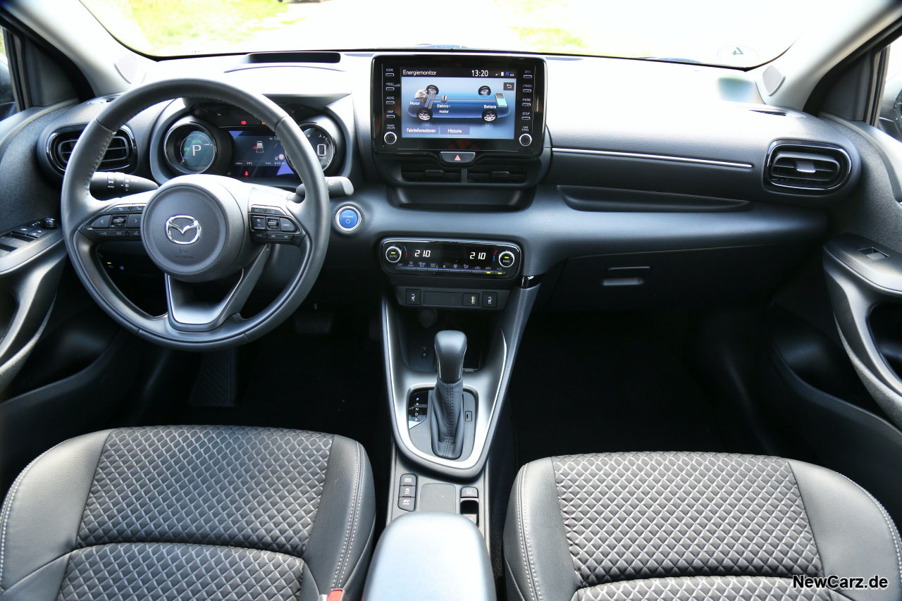 Doch man kann nur staunen, wie oft der Hybrid immer wieder kurze Strecken rein elektrisch bewältigt. Das geschieht dabei durchgängig sehr harmonisch abgestimmt, sodass man kaum spürt, wenn sich Verbrenner und E-Motor abwechseln oder ergänzen. Typisch Toyota eben, und das in einem Mazda.