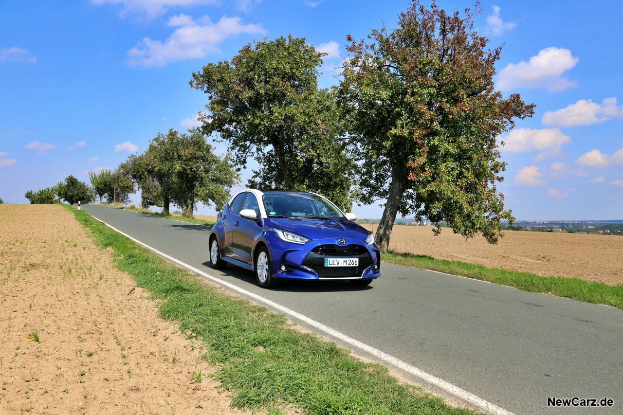 Mit austariertem Fahrwerk kann man den Kleinwagen auch mal sportaffin in die nächste Kurve werfen, ohne dass dies zum unmöglichen Unterfangen mutieren würde. Der Mazda bleibt sehr lange neutral und setzt dank direkter Lenkung alle Lenkbefehle zackig und ohne Murren um.
