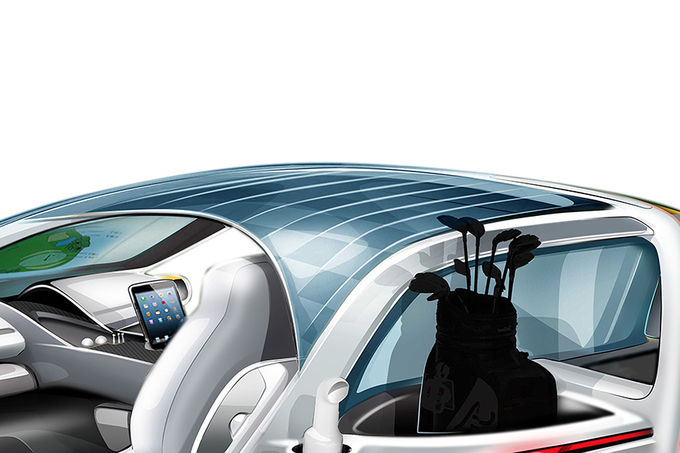 Saft bekommt das Cart von den innovativen, am Dach angebrachten Solarzellen sowie über die Steckdose.