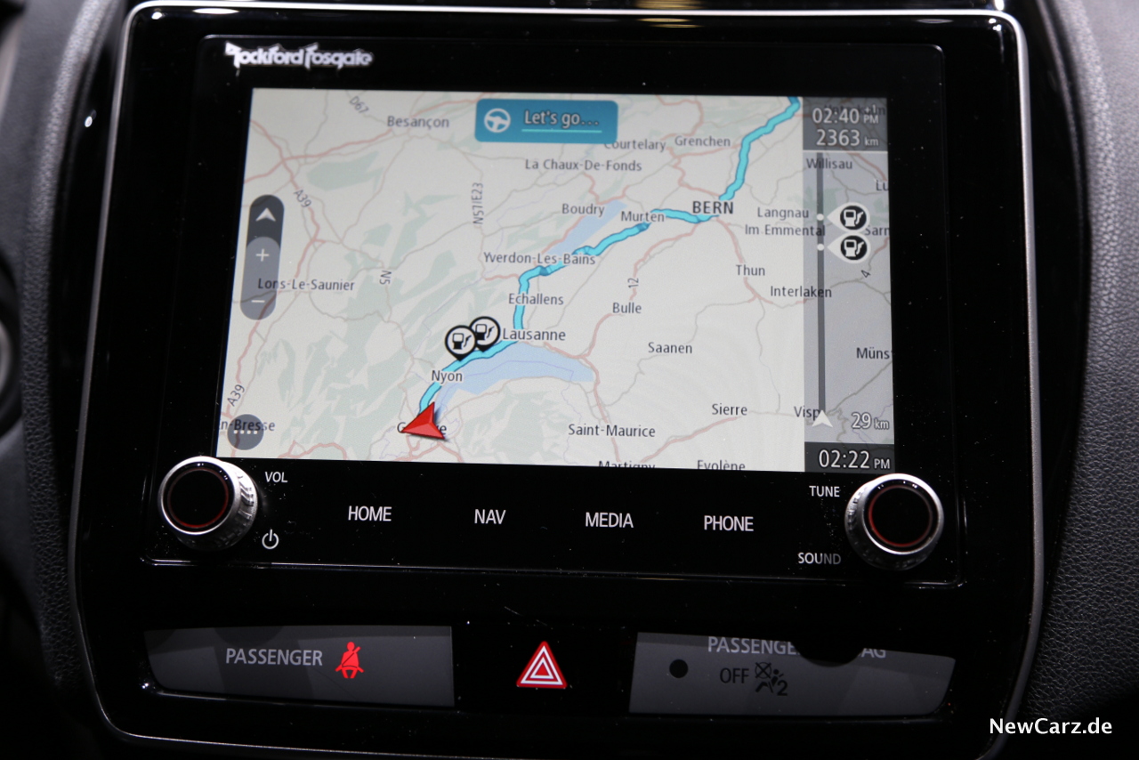 Optional gibt es im neuen ASX auch ein TomTom Navigationssystem, welches Echtzeit-Verkehrsinfos berücksichtigt und in die Routenführung einfließen lässt.