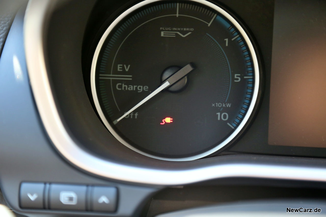Die Realität ist davon ein ganzes Stück entfernt. Voll aufgeladen prophezeite uns das System 38 Kilometer und als Mittelwert und bei normaler Fahrweise – ohne Autobahn – kamen wir auf einen Bestwert von 32,7 Kilometern. Bis zu 135 km/h kann man übrigens im Crossover rein elektrisch fahren.