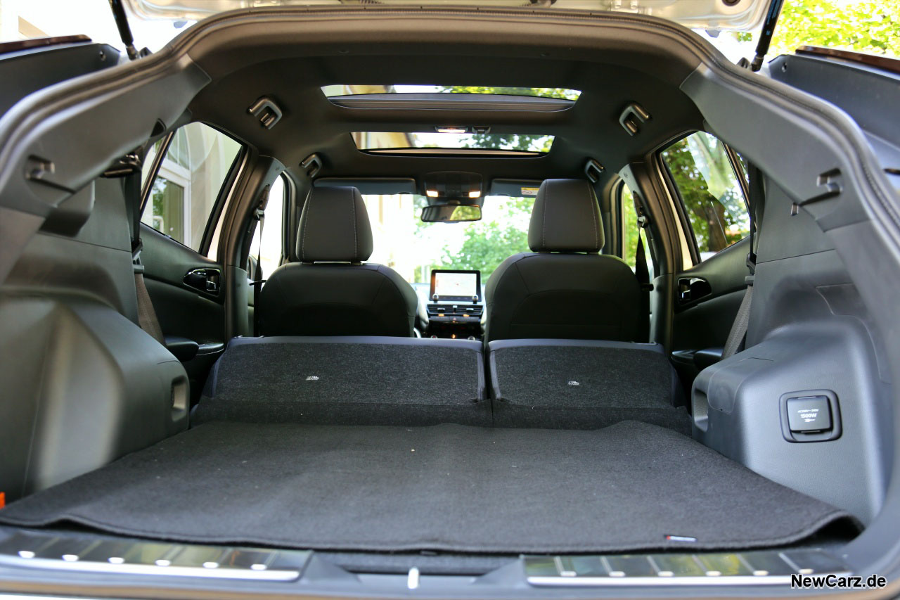 Im Fond gibt es für diese Fahrzeugklasse ausreichend Platz, was ebenso für den Kofferraum gilt, wenngleich dieser mit mindestens 359 Litern gegenüber dem Vorfacelift mit reinem Verbrenner um 19 Liter etwas kleiner ausfällt.