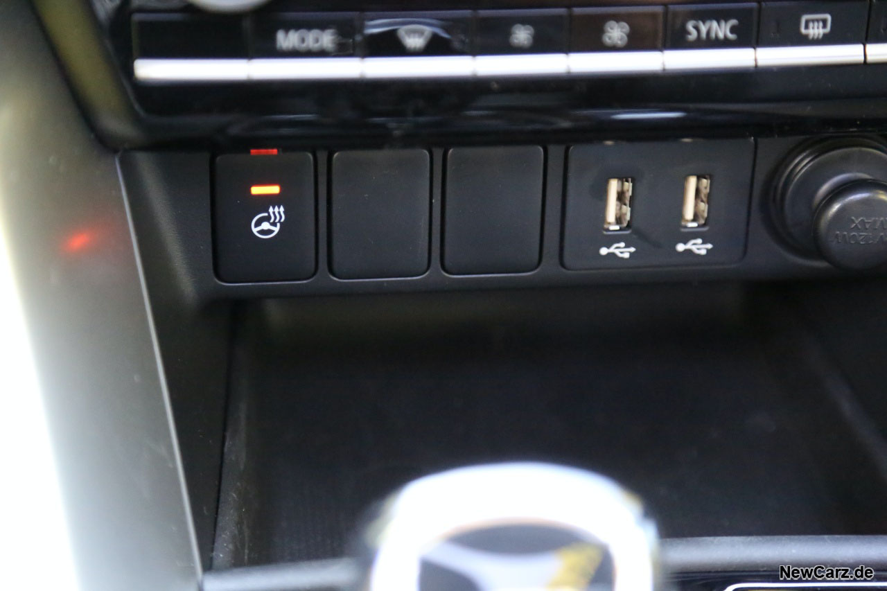 Die Lenkradheizung erwärmt nur links und rechts die Griffzonen, die Ober- und Unterseite des Lenkradkranzes bleibt dagegen kalt. Dafür überzeugen die Sitzheizungen mit Homogenität und schneller Wärmeentwicklung. Das gilt auch für die beiden Sitzheizungen im Fond.