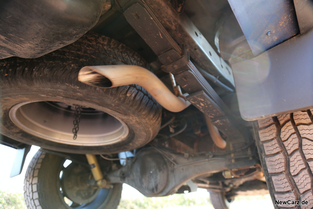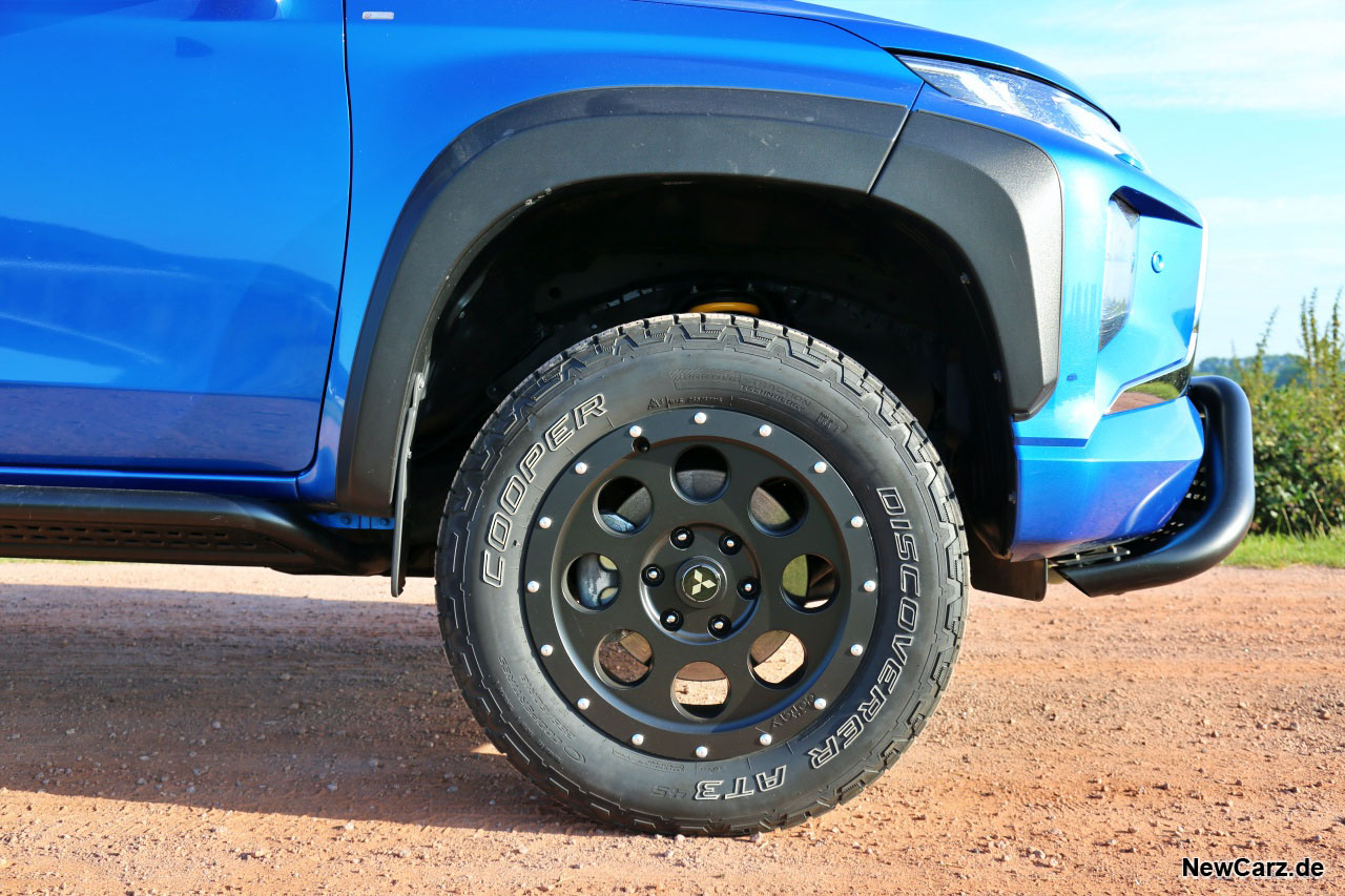 So macht der Mitsubishi L200 Explorer auf Asphalt & Co. eine gute Figur, zeigt durchaus Manieren und erlaubt auch ausgedehnte Touren, ohne dass die Insassen sogleich einem Lärm- oder Schaukelkoller unterliegen. Das verstärkte Fahrwerk trägt das Mehrgewicht souverän. Die Hinterachse besitzt eine Maistone Luftfederunterstützung, bestehend aus zwei Luftbälgen, mit denen das Fahrzeugniveau auch beladen beibehalten werden kann.