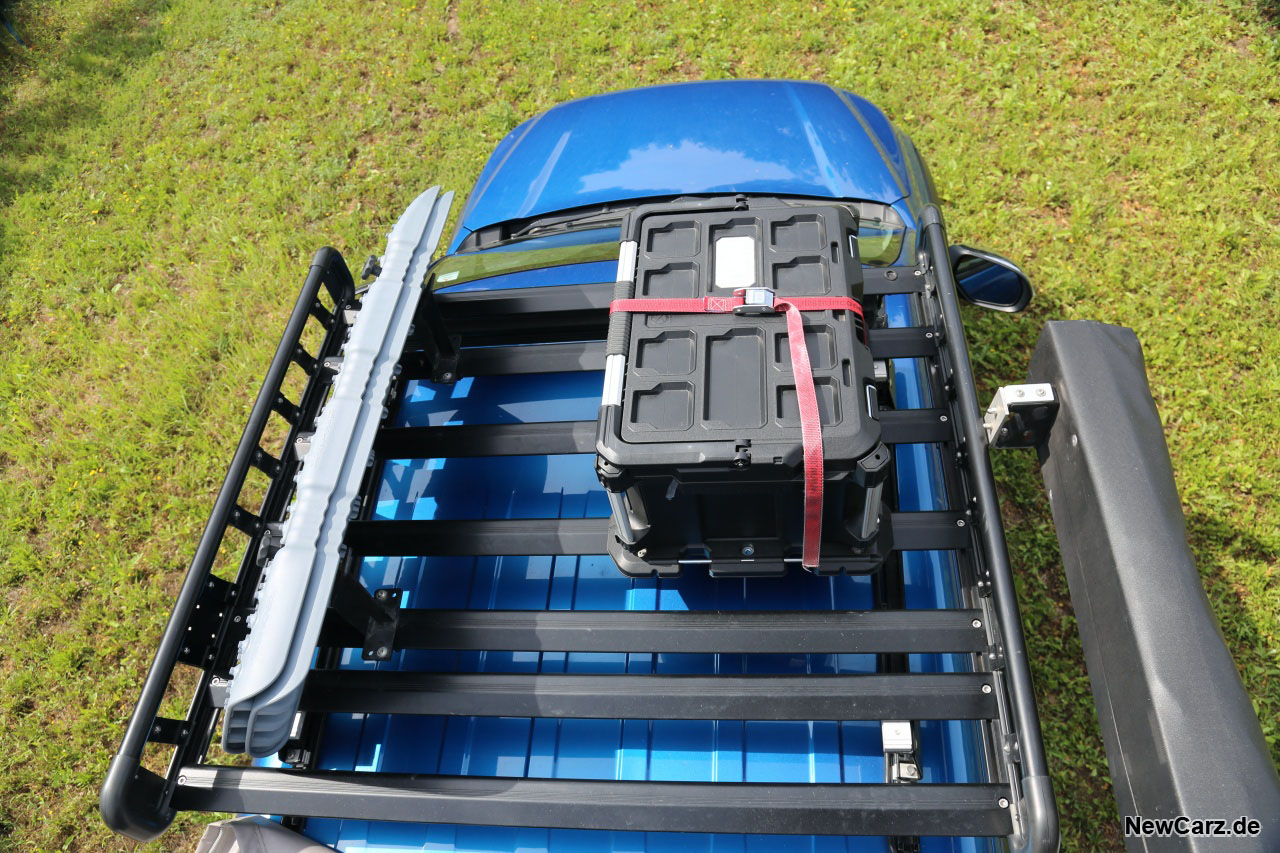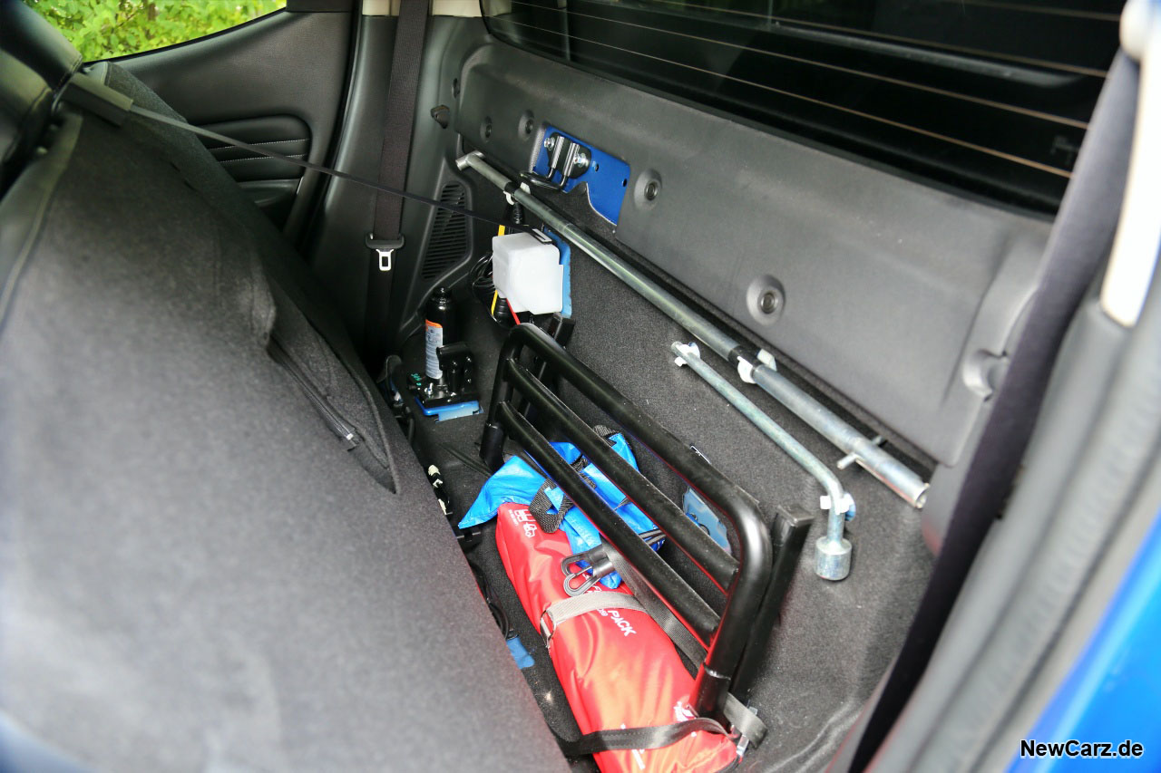 Lediglich die durch die Dachaufbauten spürbar stärkeren Windgeräusche bei hohen Tempi und der höhere Schwerpunkt, den man bei schnellen Lastwechseln und in flott gefahrenen Kurven bemerkt, unterscheiden hier den Abenteuer-Pickup von seinen Geschwistern.
