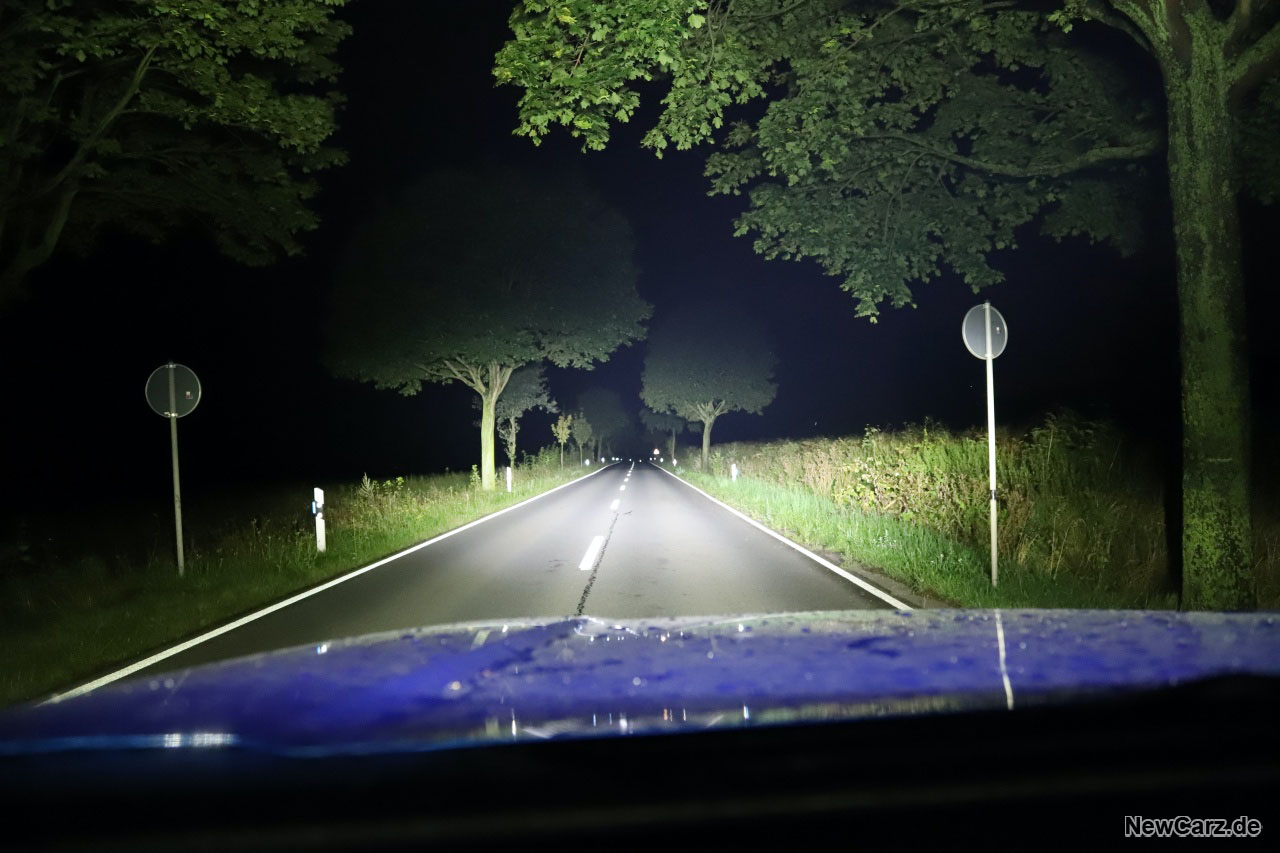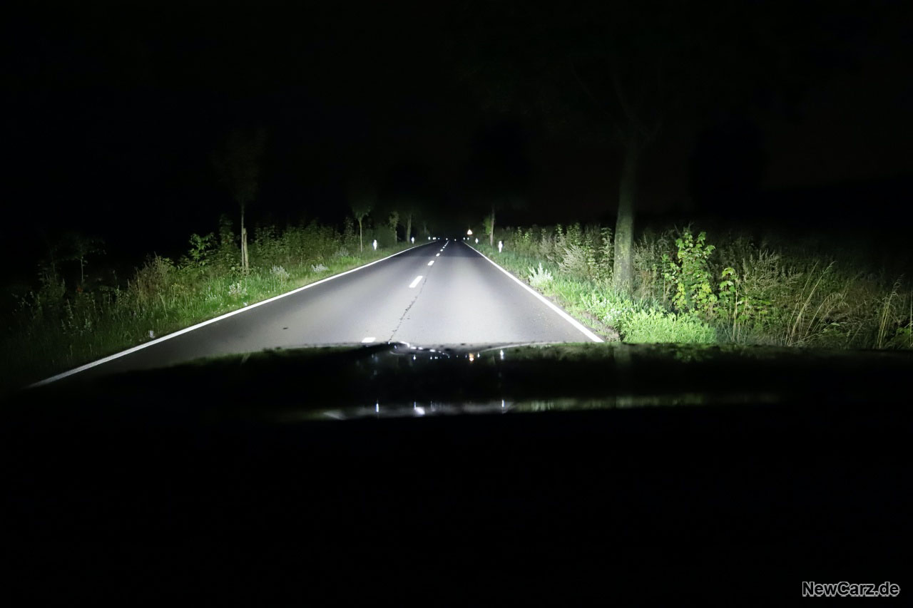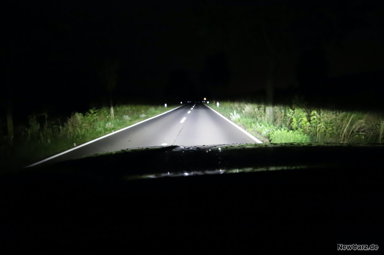 Unbedingt erwähnenswert ist die Lichtanlage des L200 Explorer. Neben den bereits serienmäßigen Voll-LED-Scheinwerfern ist hier eine Lichtleiste angebracht worden, die alle bisher getesteten Scheinwerfer gnadenlos und im wahrsten Sinne des Wortes in den Schatten stellt. Dieses Band aus Hochleistungs-LEDs leuchtet den Bereich vor dem Fahrzeug auf rund einen Kilometer Länge komplett aus.