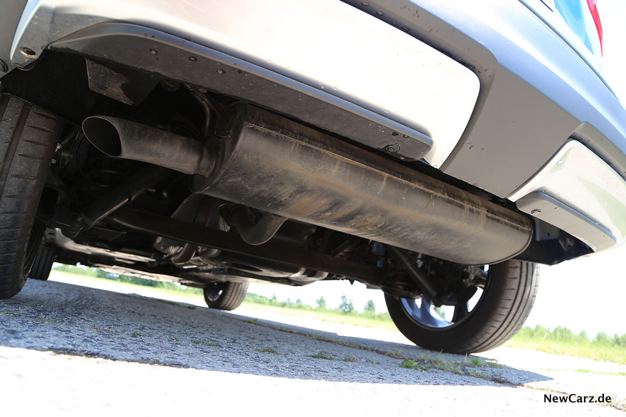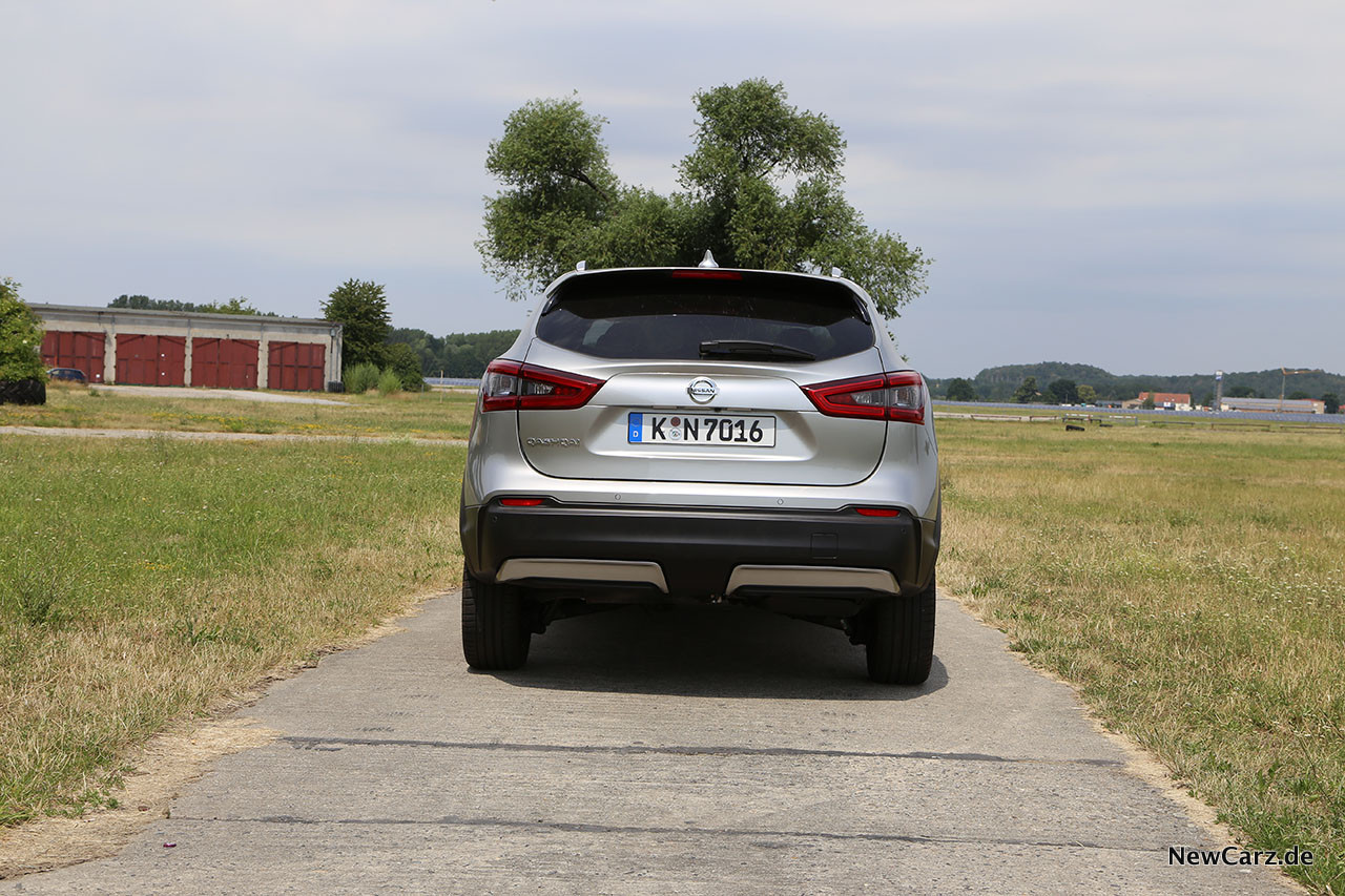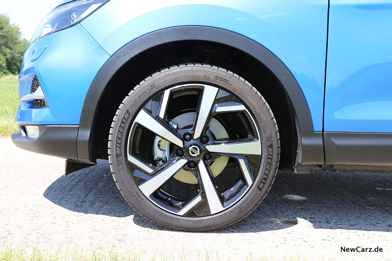 Im direkten Vergleich zwischen Diesel und Benziner gibt es äußerlich kaum Unterschiede. Dass es sich bei Diesel um einen Allradantrieb handelt, sieht man nicht sofort – vor allem nicht, weil es keinen Hinweis in Form eines Schildes, Schriftzuges oder ähnlichem am Qashqai gibt. Nur die Hinterachse sieht konstruktionsbedingt etwas anders aus und wird ein wenig technisch versierte Beobachter beim genaueren Hinschauen erkennen lassen, dass dies den einzigen Unterschied zum Frontantriebler darstellt.
