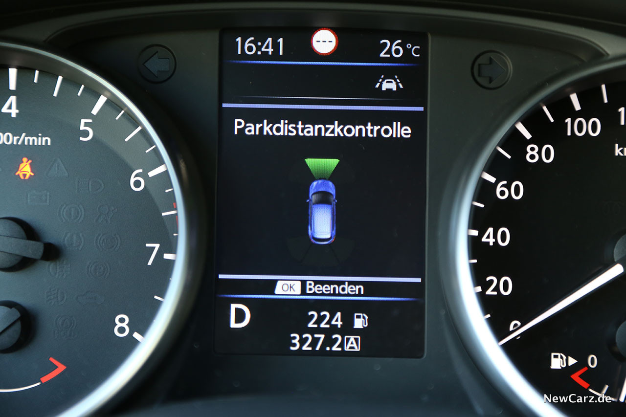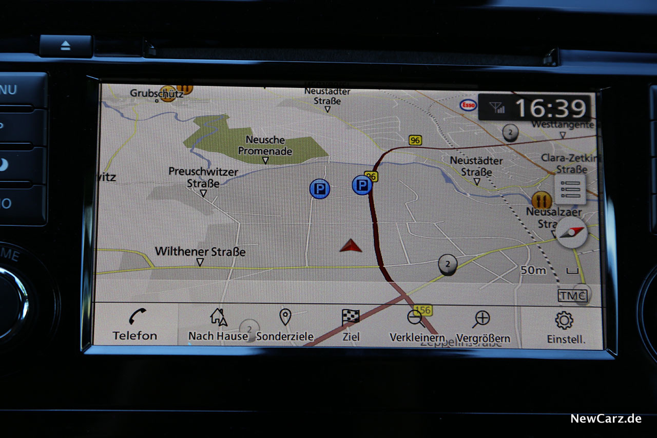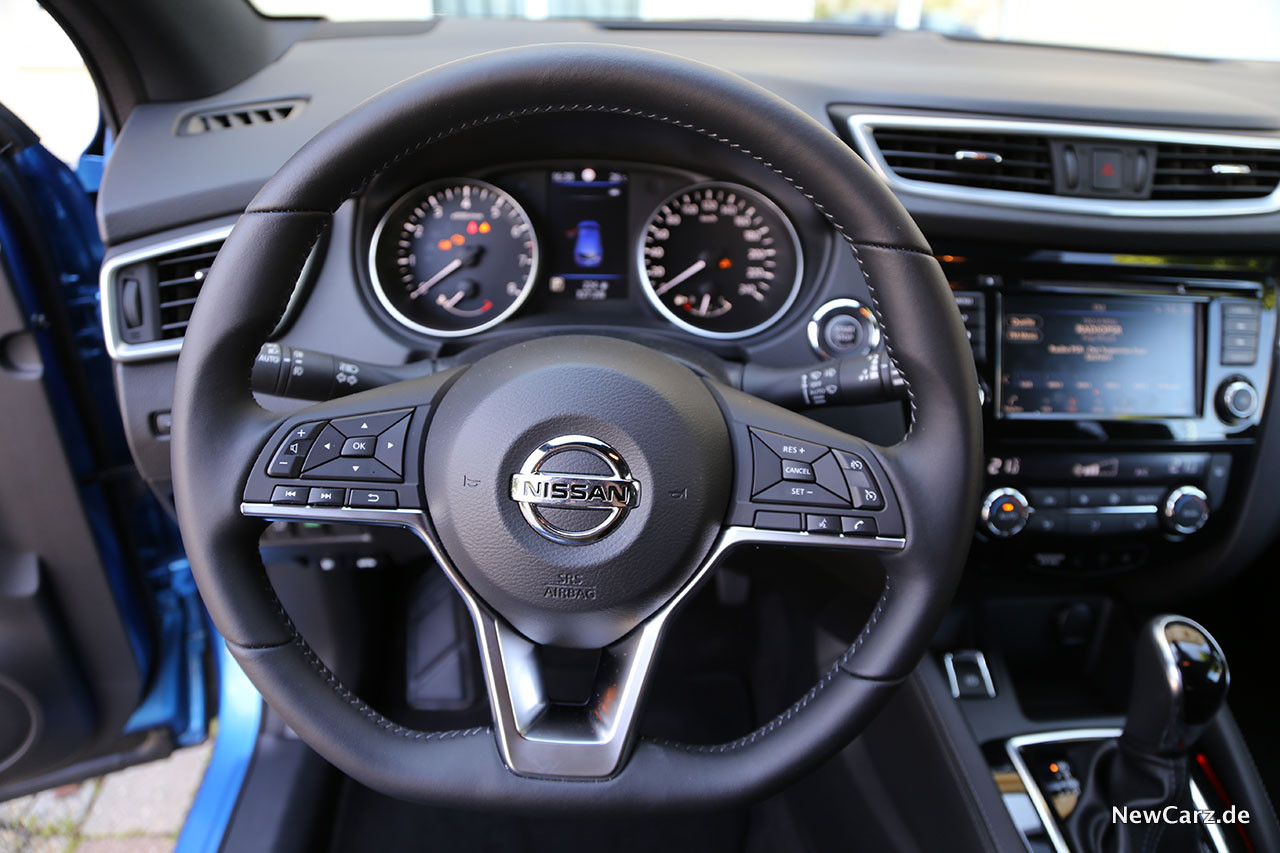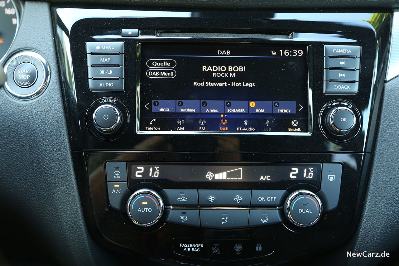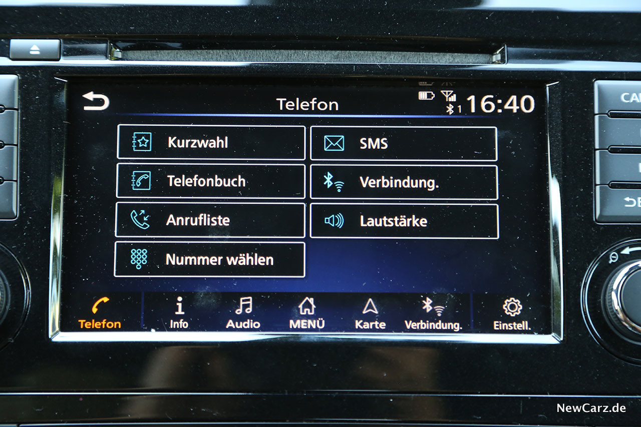 Das Infotainmentsystem erledigt zuverlässig seine Aufgaben, doch zeigt es mittlerweile deutliche Spuren der Zeit. Mit modernen Systemen kommt dieses im Nissan Qashqai nicht mehr mit. Wer sich aber mit einer sehr einfachen Kartendarstellung, nur durchschnittlichen Rechenzeiten und einer gering auflösenden, aber immerhin Rundumsicht bietende Rückfahrkammera zufriedengeben kann, wird aber auch mit dem Qashqai seine Freude haben.