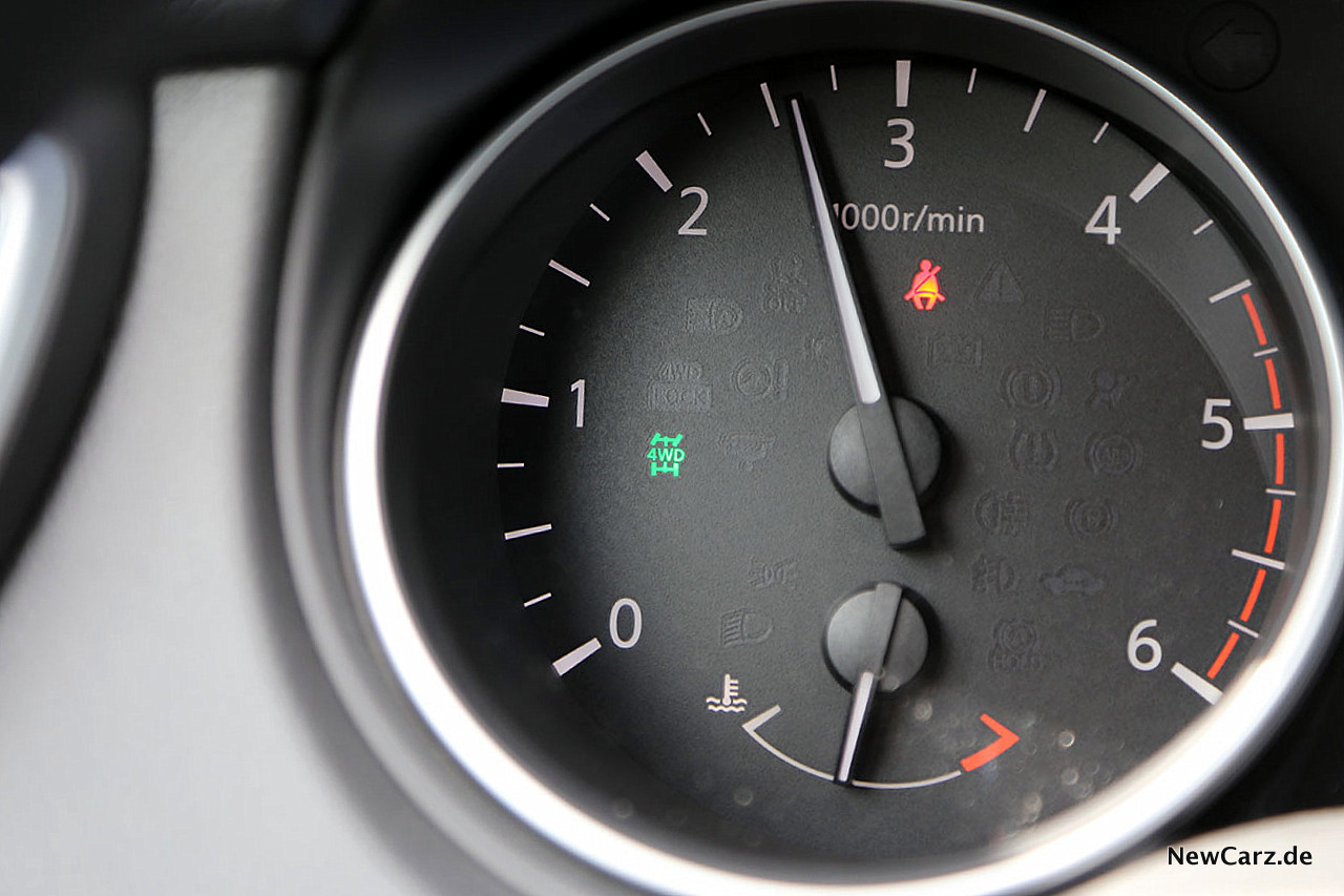 Die simulierten Gangstufen des CVT fallen je nach Gangart unterschiedlich aus – bei forcierter Fahrweise erscheinen sie unrealistisch langgezogen, was auch nicht verwundert, denn es handelt sich eben nur um simulierte Schaltstufen. Auffällig waren auch die Getriebegeräusche des CVT, die besonders beim Bremsen bis kurz vor dem Stillstand oft zu hören waren und dem des CVT im Renault Koleos sehr ähnlich klangen.