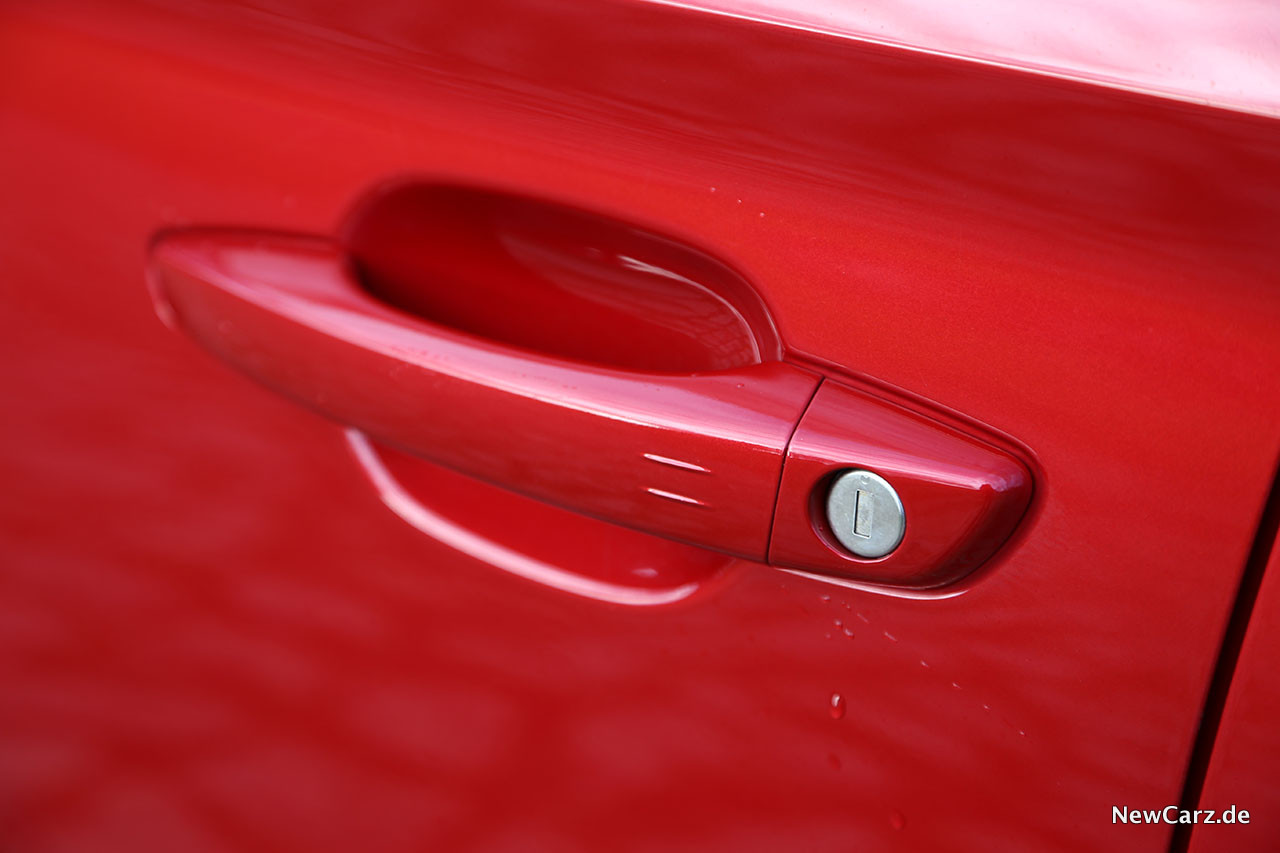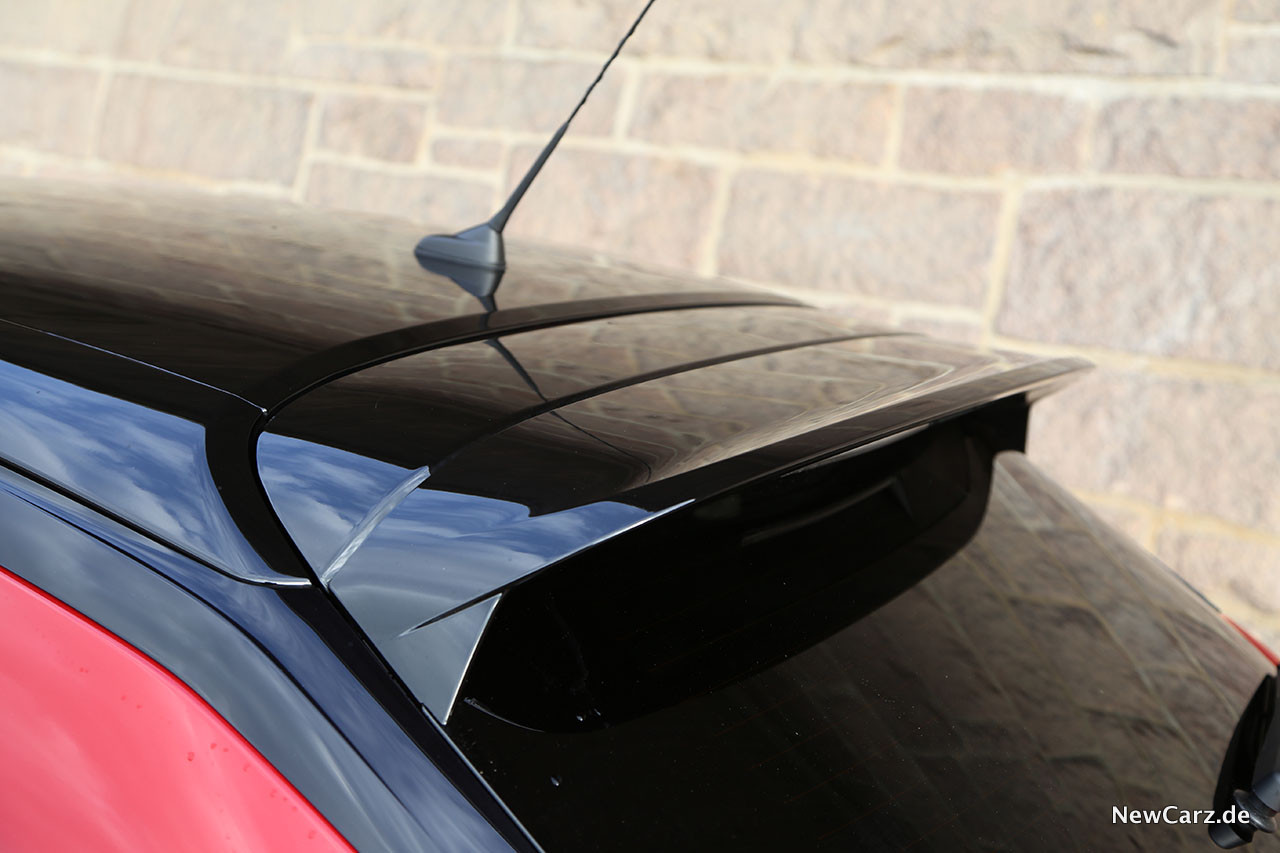 Das Chili Rot unseres Testwagens loderte feurig auf der Iris seiner Betrachter und das schwarze Dach der Zweiton-Farbgebung, welches am Heck durch einen Dachspoiler in die Verlängerung geht, resultierte in Summe für einen sportlichen Auftritt.