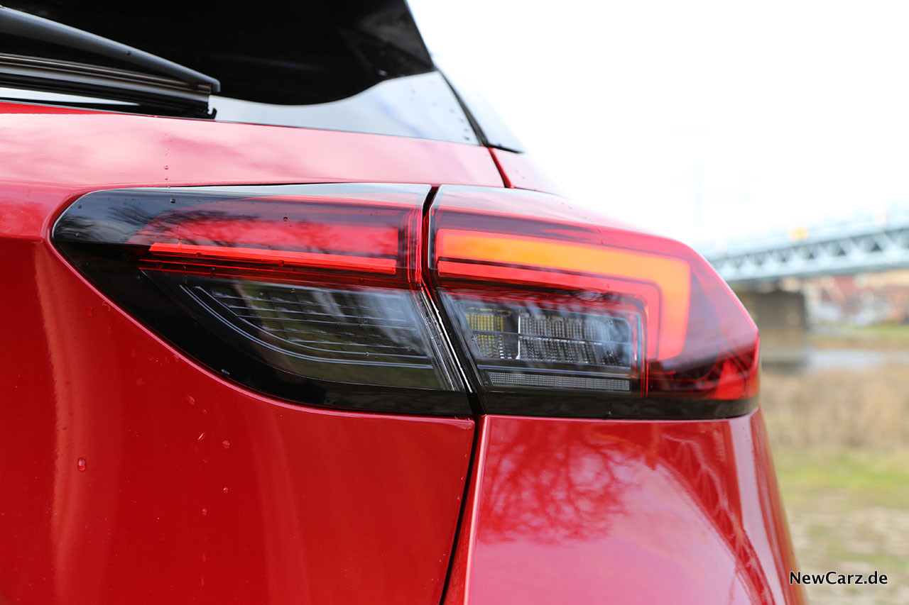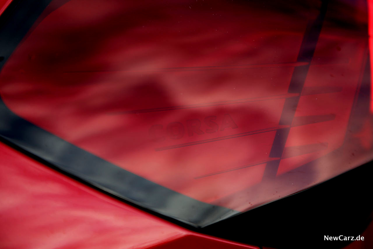Das Heck erinnert durch sein „Flat-Design“ ein bisschen an einen Mini-Astra und das Doppelrohr unter dem Stoßfänger vermittelt sogleich das bestehende Potenzial des Opel Corsa GS Line.
