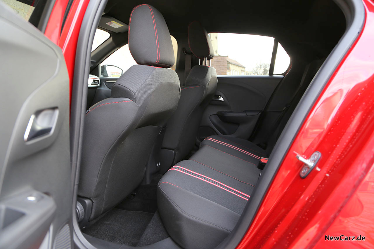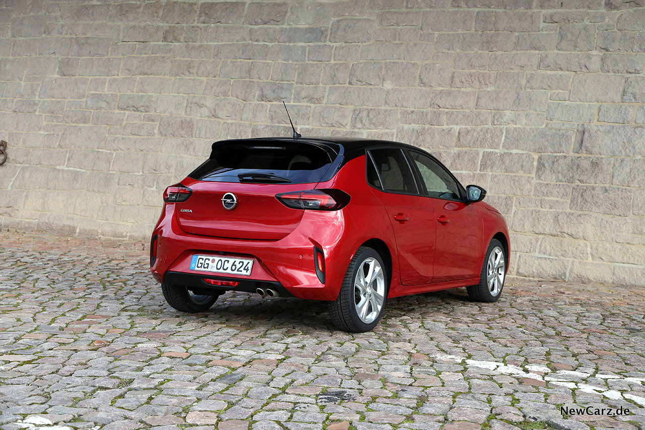 In der Seitenansicht vermittelt der Opel Corsa GS Line klassische Kleinwagenformen. Die Türen des Fünftürers wirken recht klein, vor allem die Türen zum Fond suggerieren bereits im geschlossenen Zustand schmale Zustiege. Dafür schnalzen sie aber ringsherum satt und eher im Format der oberen Mittelklasse in ihre Schlösser.