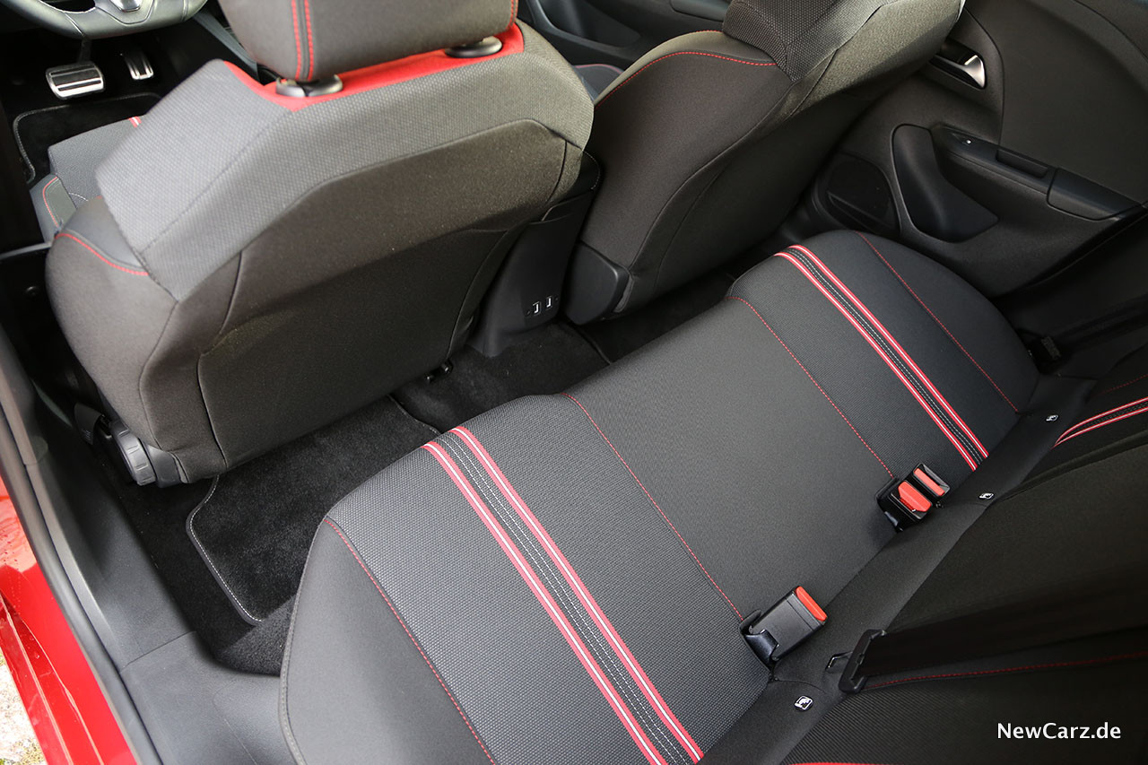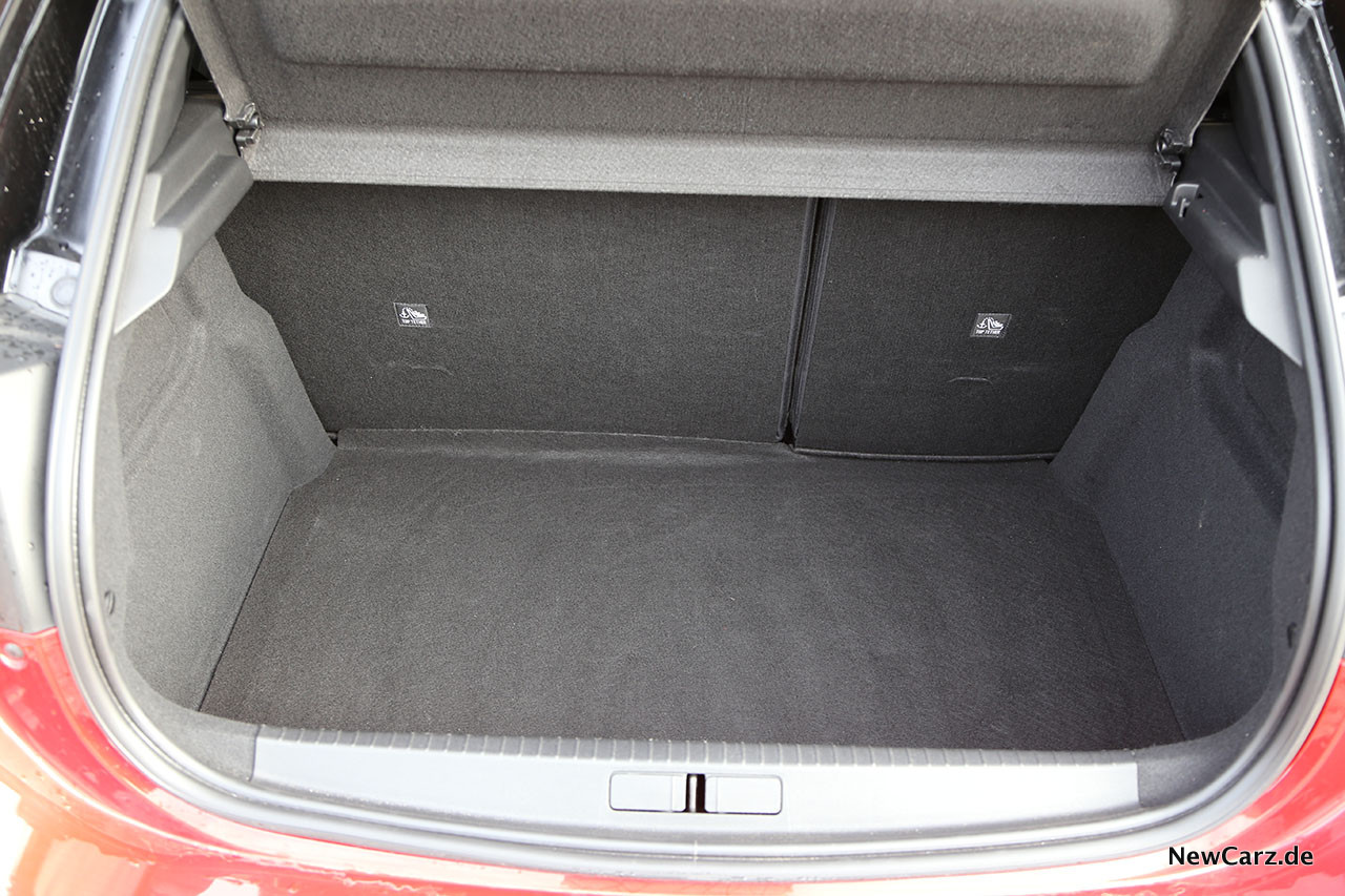 Die bequemen, sehr großzügig geschnittenen vorderen Sitze nehmen problemlos auch fülliger beleibte Insassen auf, wohingegen der Fond kleinwagentypisch einige Abstriche verlangt, was Körpergröße & Co. angeht. Für einen Kleinwagen ist das Platzgefühl allerdings in Ordnung, der Innenraum wirkt aber insgesamt stärker die Insassen umbauend, als in anderen Kleinwagen.