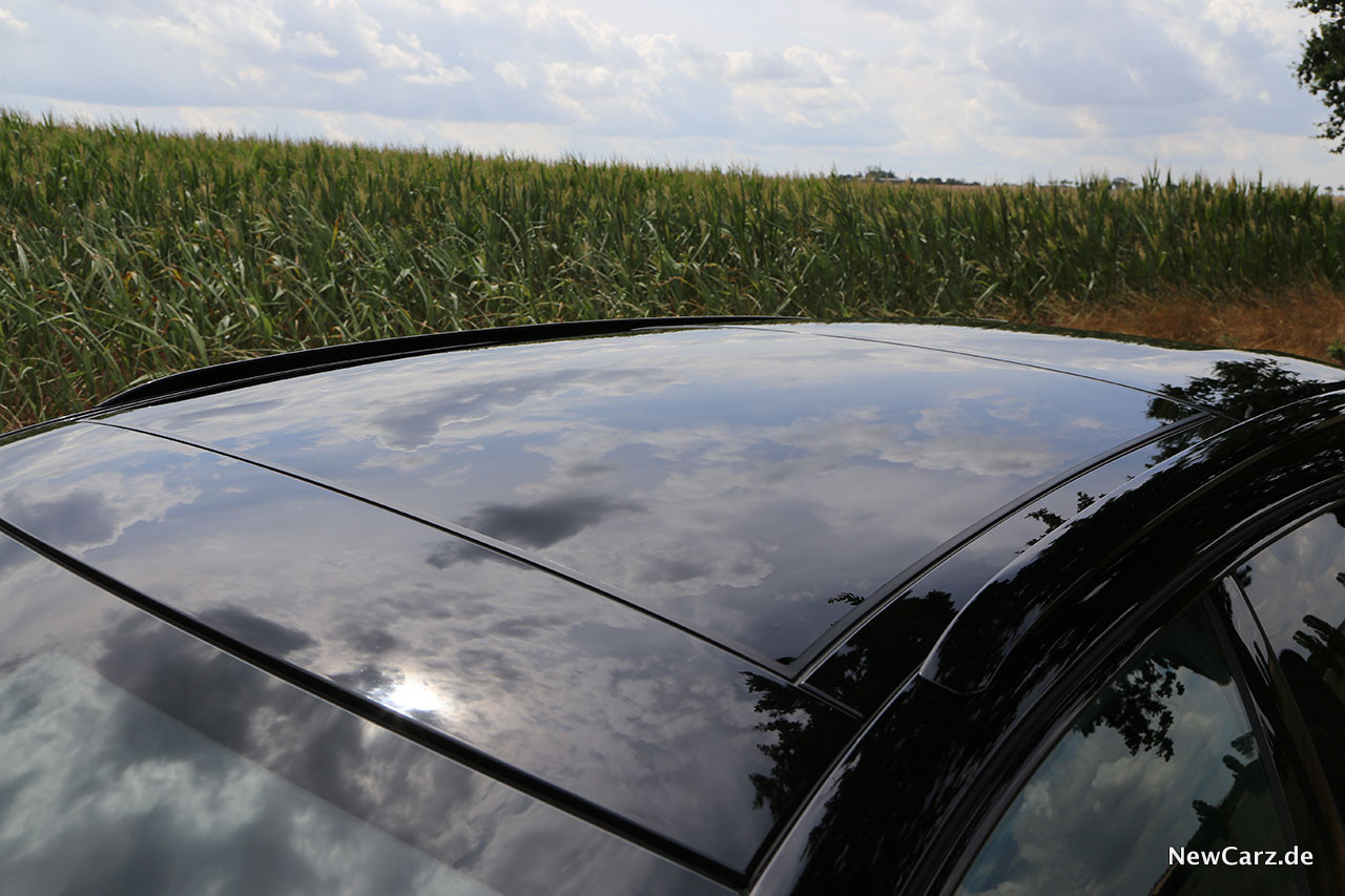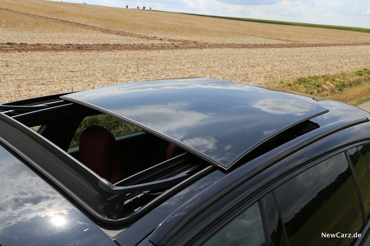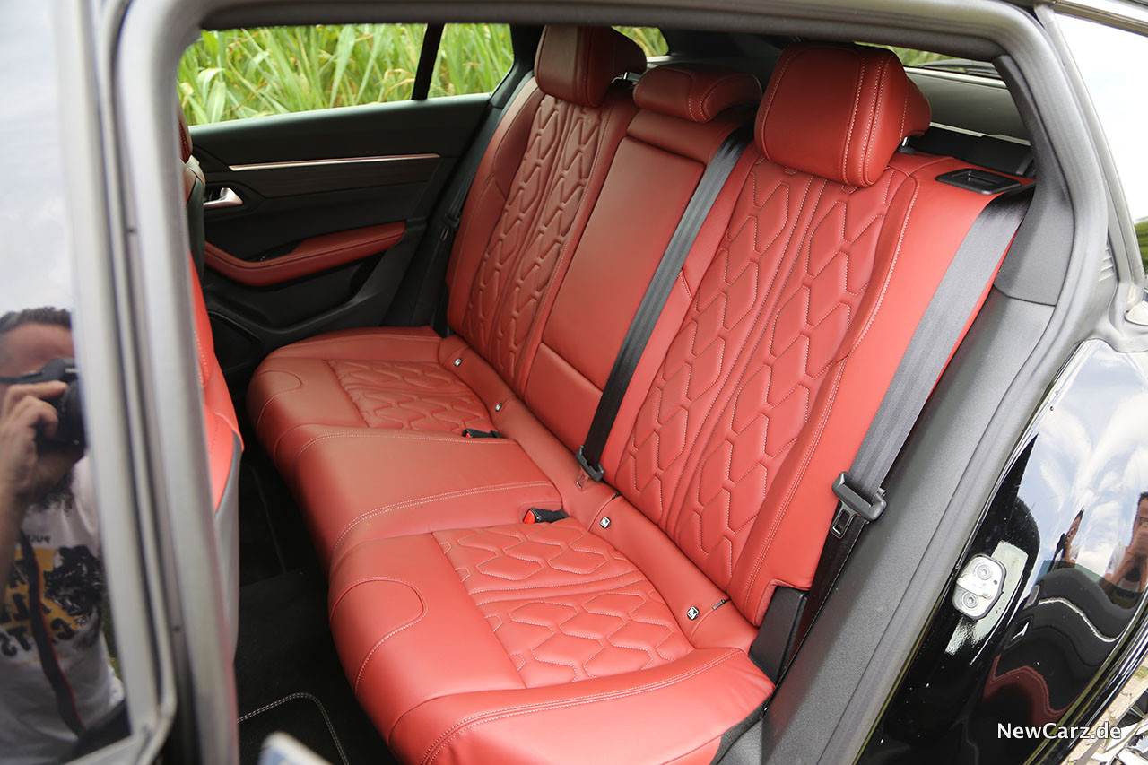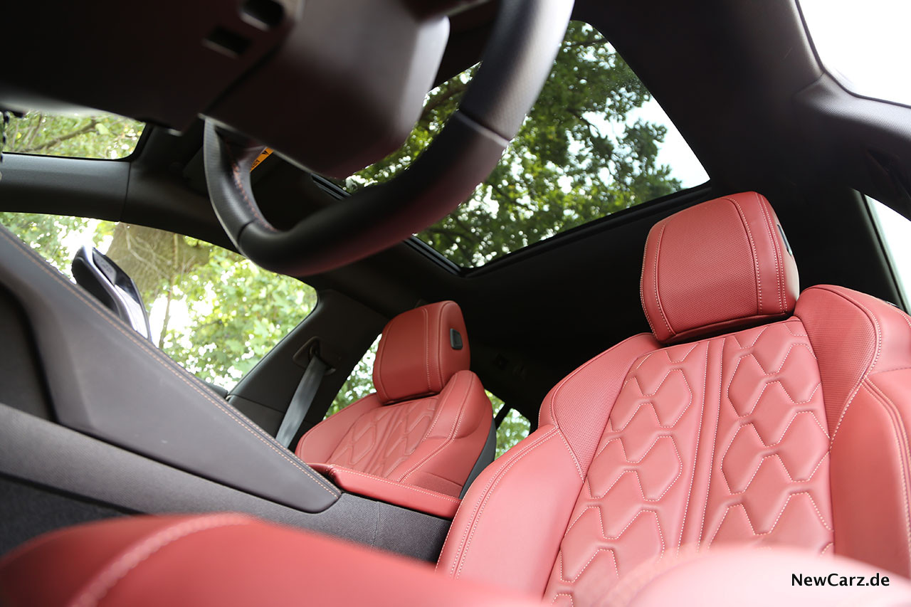 Superbequeme AGR Sitze lassen den Fahrer blitzschnell elektrisch seine Position finden und das herrlich griffige, extrem kleine Lenkrad sitzt so, dass es den Blick auf das volldigitale Cockpit nicht verdecken kann. Das Raumgefühl ist großzügig und auch auf der zweiten Sitzreihe findet sich trotz abfallendem Dach erstaunlicherweise genügend Platz. Nur der Ein- und Ausstieg erfordert hier ein bisschen mehr Gelenkigkeit, doch der Sitzkomfort entschädigt dafür innerhalb kürzester Zeit.