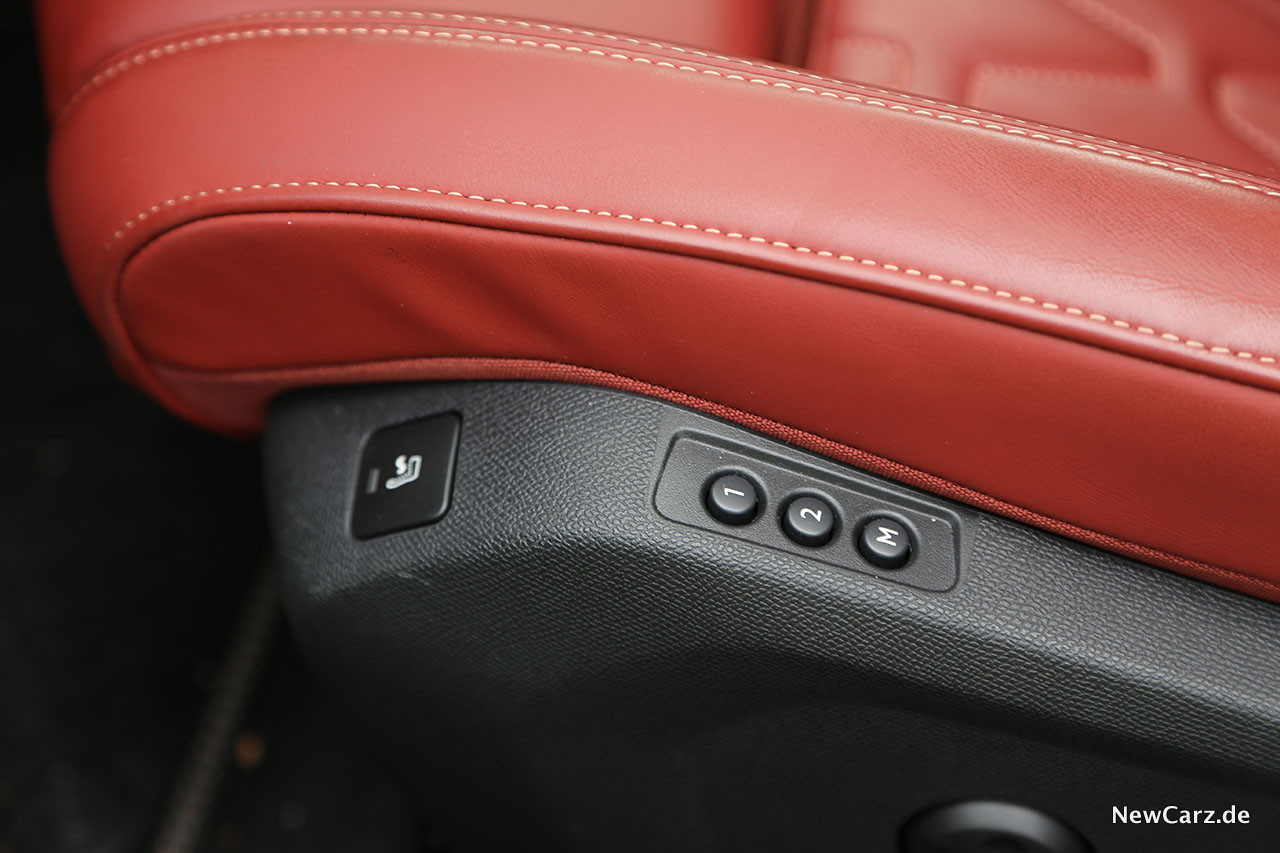 Die elektrisch verstellbaren und dreistufig beheizten AGR-Sitze mit diversen Massagefunktionen verwöhnten die vorderen Passagiere mit hervorragendem Sitzkomfort. Nur eine weder für Geld noch für gute Worte erhältliche Sitzbelüftung fehlte hier noch, dann wäre es wirklich perfekt.