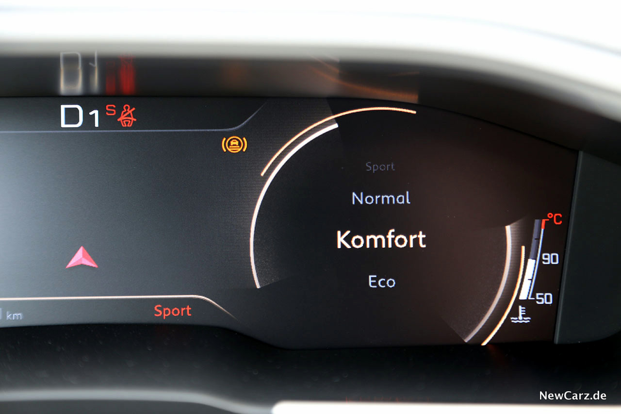 Das Active Suspension Control bietet verschiedene Fahrmodi, welche sich durch unterschiedliche Dämpfer- und Lenkungsabstimmungen sowie angepasste Motorkennlinien auszeichnen. Im Fahrmodus ECO nutzt der Kombi im Schub zusätzlich eine Segelfunktion. Dieses Entkoppeln des Antriebsstranges minimiert die Reibungswiderstände und spart dadurch zusätzlich Kraftstoff.