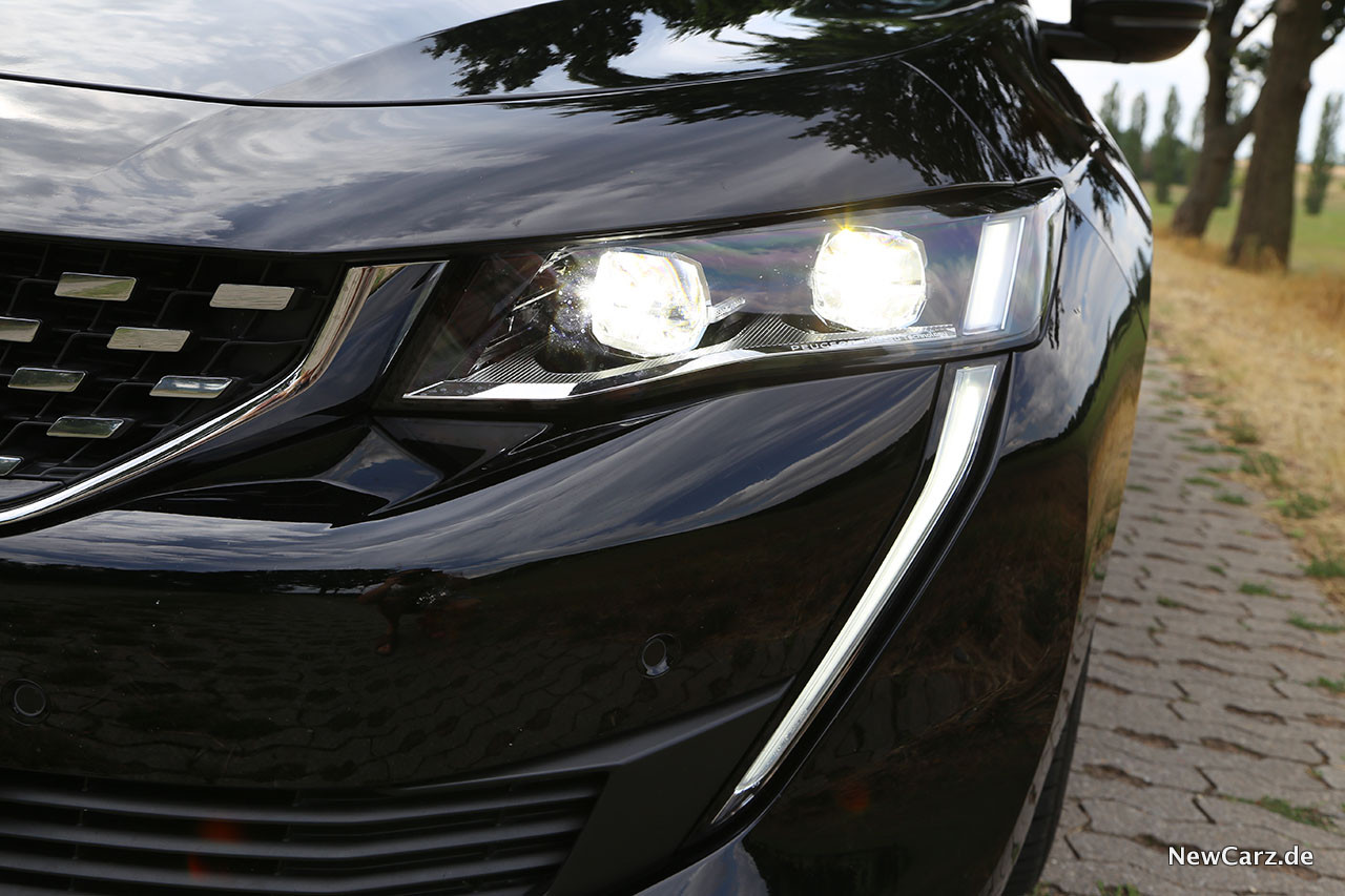 Ebenfalls serienmäßig im GT ist das Full LED Paket, welches neben den LED-Scheinwerfern unter anderem auch die Innenbeleuchtung durch LED-Technik realisierte. Die Scheinwerfer – übrigens gibt Peugeot als einziger Hersteller die Lumen der Leuchteinheiten direkt am Scheinwerfer an – machten jede Fahrt bei Dunkelheit zum freudigen Ereignis.