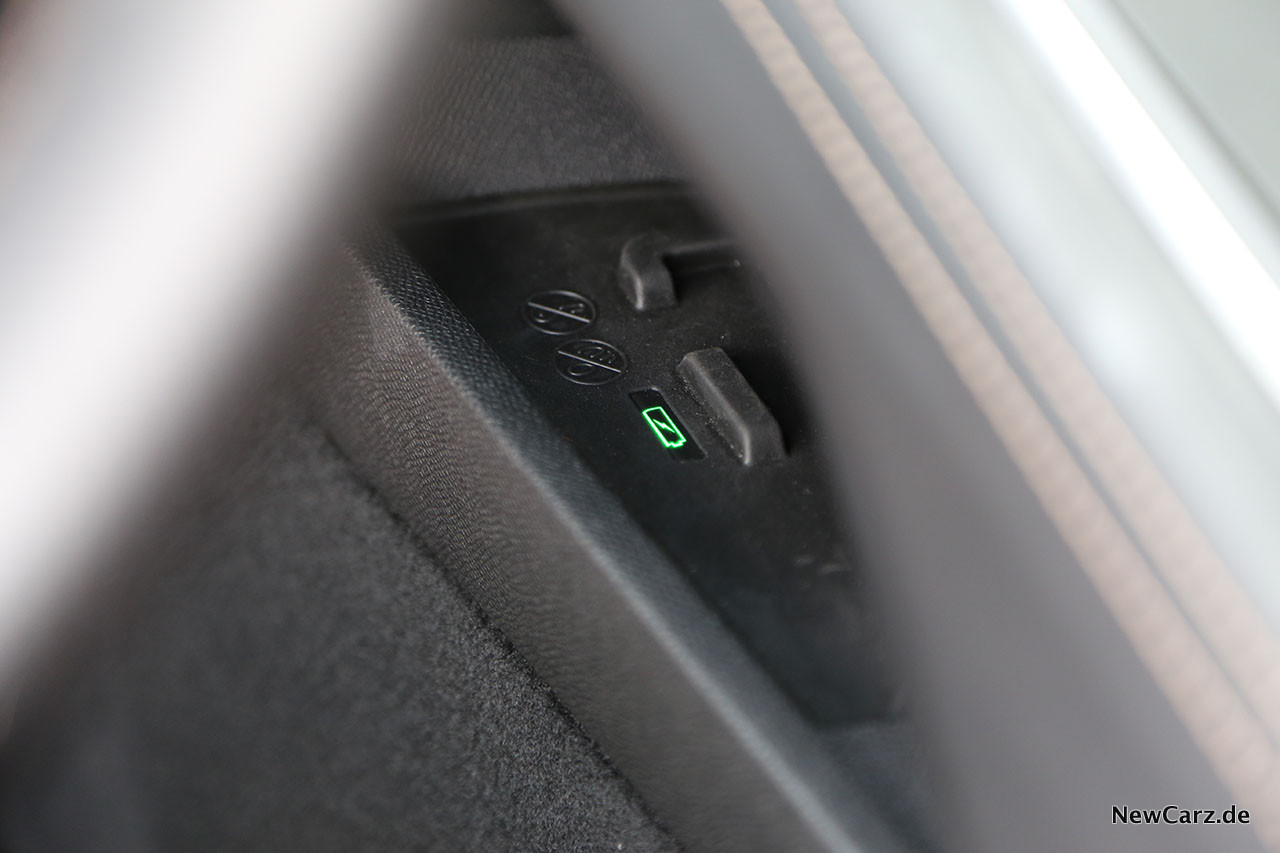 Ergonomischer Patzer: Dass die Mittelkonsole vorne noch eine zweite Unteretage besitzt, erkennt man erst auf den zweiten Blick. Dort befinden sich zwei USB-Anschlüsse und die induktive Ladestation. Beides ist während der Fahrt so gut wie unerreichbar. Besonders, wenn man größer als 1,85 Meter ist, verdeckt man dieses Fach außerdem erfolgreich mit dem jeweils innenliegenden Bein.