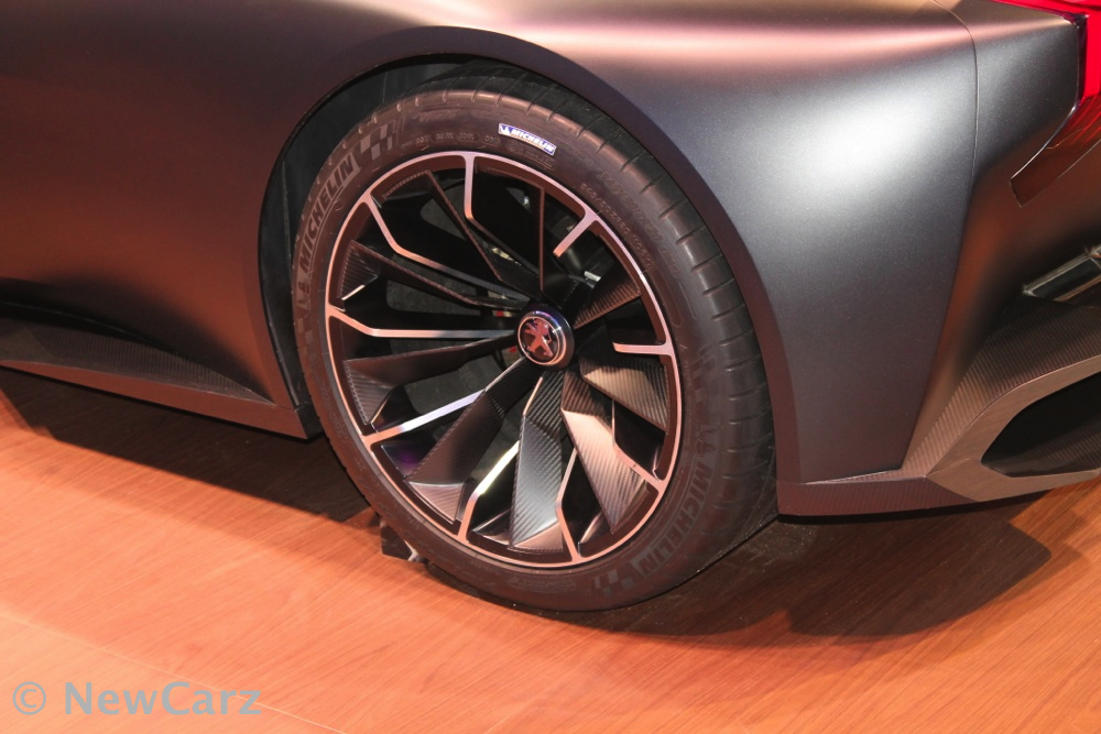 Der mit der Carbonstruktur verschraubte 3,7 Liter große V8-HDi-Hybridmotor mit Rußpartikelfiltersystem bringt seine 600 PS über ein Sechsgang-Getriebe mit den Hiterrädern auf den Asphalt. Kombiniert mit der kompakten Größe von nur 4,65 m Länge, 2,20 m Breite, 1,13 m Höhe und nur 1.100 kg Gewicht insgesamt entspricht das Leistungsgewicht knapp 2 Kilogramm pro PS. Die 20-Zoll-Felgen mit eigens von Michelin entwickelten Reifen (für die, die es interessiert: Vorne sind es 275/30, hinten 345/30) werden an Vorder- und Hinterachse über zwei Dreiecksquerlenker und eine so genannte In-Board-Aufhängung mit der Karosserie verbunden.