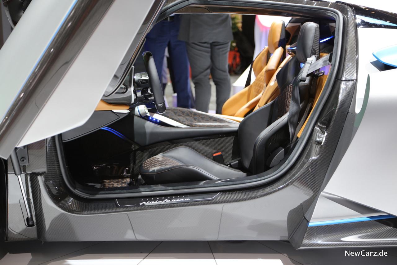 Beim Antrieb plus Chassis kooperiert Pininfarina mit dem E-Antriebsspezialisten Rimac aus Kroatien, der unter anderem auch die vier Elektromotoren samt Steuerung und Stromspeicher liefert. Die Leistungswerte sind atemberaubend: Insgesamt 1.900 PS und 2.300 Newtonmeter bringen den Pininfarina Battista in weniger als zwei (!) Sekunden von Null auf Tempo 100. Die 300-km/h-Marke fällt nach einem ersten „Woooaaaaah!“ des Fahrers, nämlich nur 12 Sekunden nach dem explosionsartigen Start. Maximal sollen über 400 km/h möglich sein.