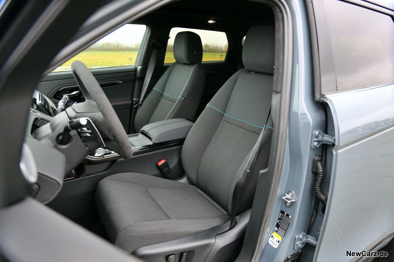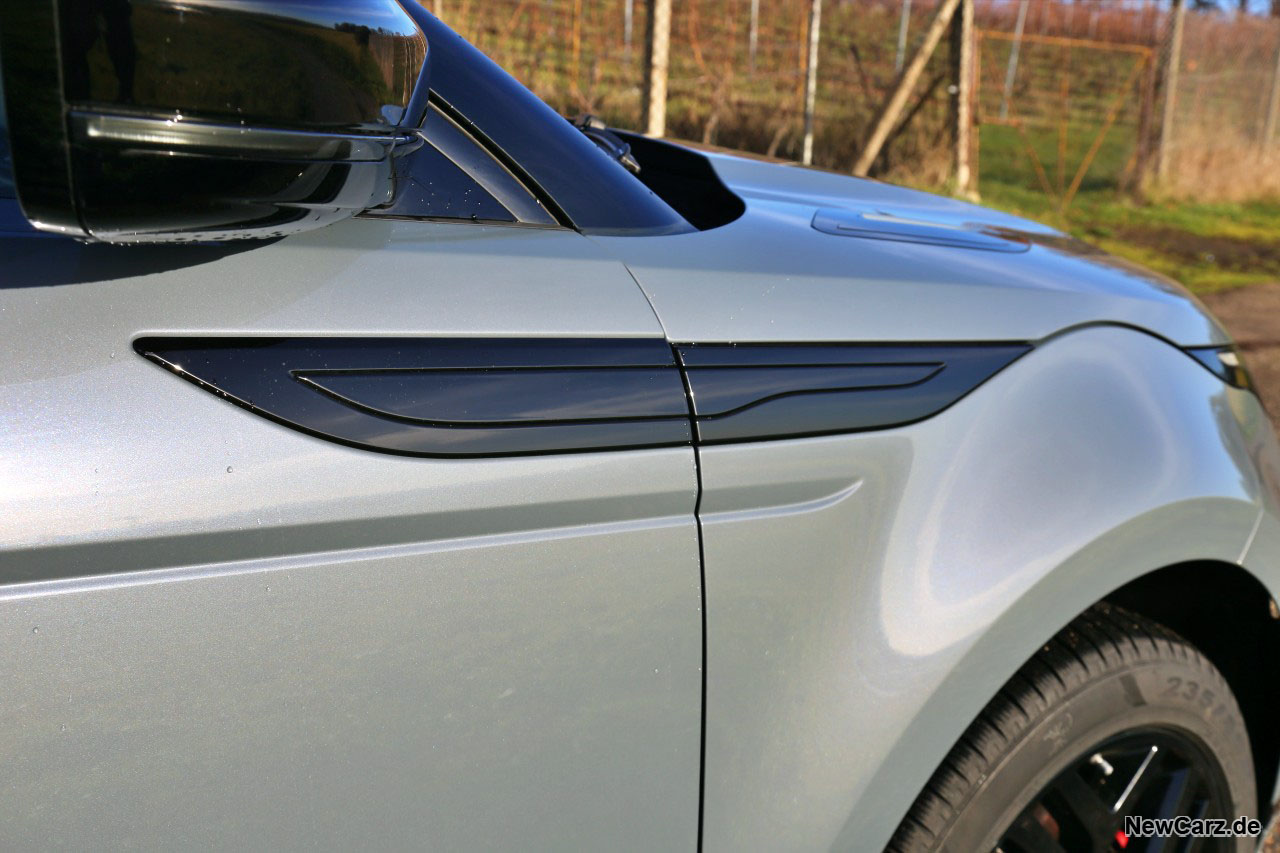 Seine kurzen Überhänge vorn und hinten lassen ihn kompakt und kraftvoll zugleich auf den Rädern stehen. Das bei dieser Ausstattung serienmäßige Black Pack beinhaltet diverse Details in Schwarz ringsum, wodurch der kleinste Range Rover eine gehörige Portion Dynamik zusätzlich abbekommen hat.
