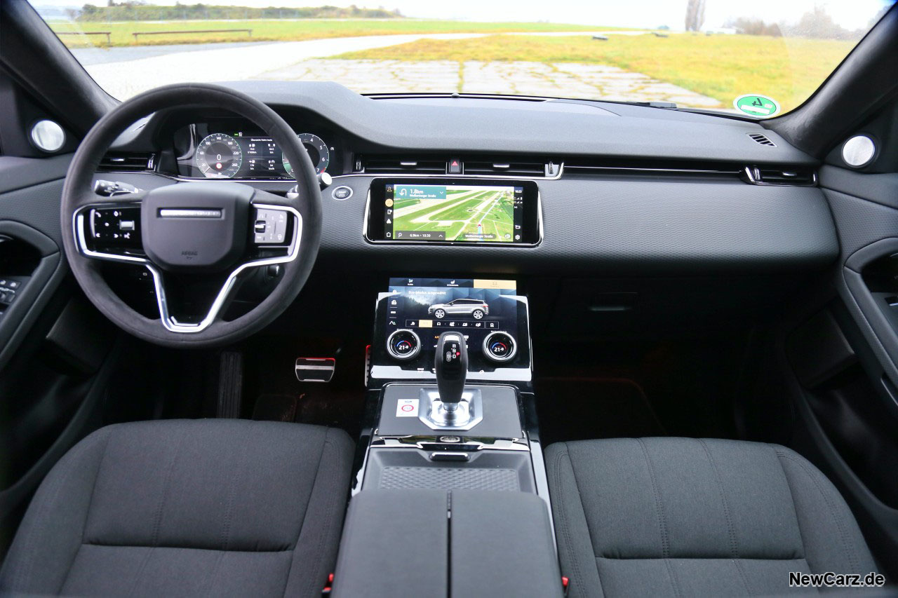 Im Innenraum gibt es wie bereits im Vorfacelift bemerkt, keinerlei Gründe für Beanstandungen zu finden. Bei den Materialien setzt Land Rover verstärkt auf den Einsatz nachhaltiger Stoffe und diese kombiniert man auch im Evoque zueinander bestens passend sowie mit akribischer Verarbeitungsmentalität verbaut.