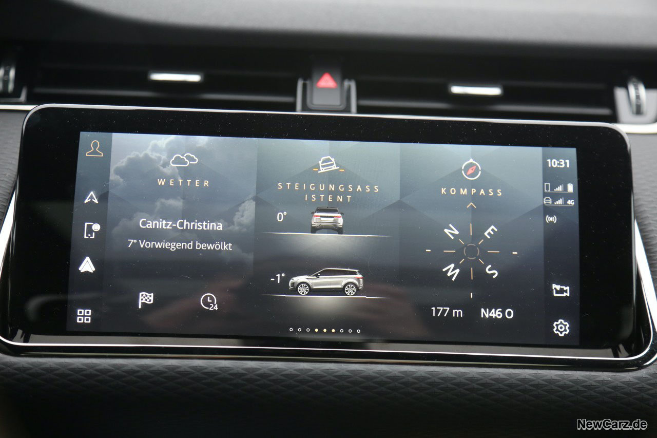 Die leichtgängige Lenkung verliert in der Neutralstellung ein bisschen von ihrer ansonsten gut spürbaren Rückmeldungsbereitschaft, passt insgesamt aber sehr gut zur Fahrwerksabstimmung. Am besten hat uns der Evoque im Fahrprogramm „Komfort“ gefallen, wobei es weniger das komfortable Dahingleiten wäre. Vielmehr zeigt der Brite hier mit Abstand am besten seine Ausgewogenheit. „ECO“ verspricht übrigens mehr, als das Fahrprogramm am Ende halten kann.