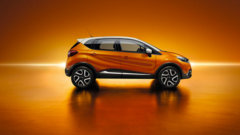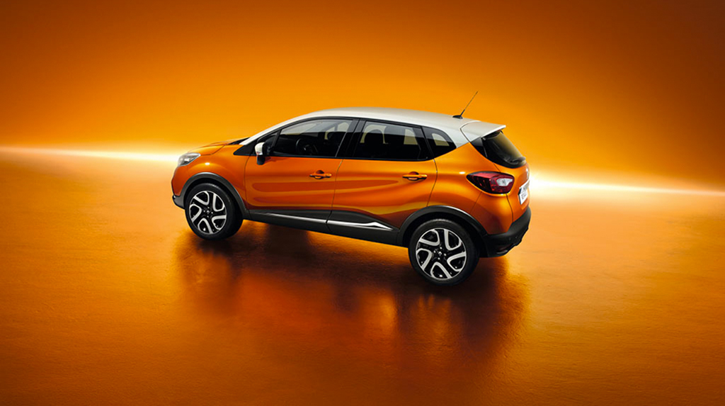 Mit dem Captur betritt Renault die Bühne einere relativ junge Wagenklasse. Es ist ein Mini-SUV. Unschwer zu erkennen ist, dass sich die Basis des Captur auf den hauseigenen Renault Clio stützt. Kühlergrill und integriertes Renault-Zeichen wurden übernommen. Durch die zweifarbige Lackierung sieht der 4,12m lange Captur aus wie ein kleiner Offroader. Diese Lackierung lässt sich in so ziemlich jeder beliebigen Kombination personalisieren: bei Haupt- und Dachfarbe, ja sogar bei der Felgenfarbe kann aus einer Vielzahl von Farben variiert werden.