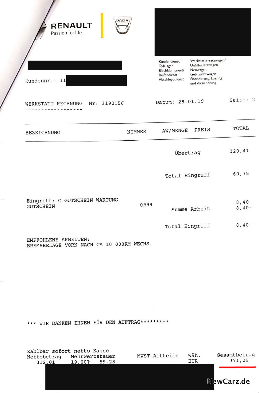 Gleich zu Beginn können wir an dieser Stelle zusammenfassen, dass das französische SUV bei diesem Service keine markanten Auffälligkeiten oder Besonderheiten offenbarte. Das ist gut und beruhigend zugleich.
