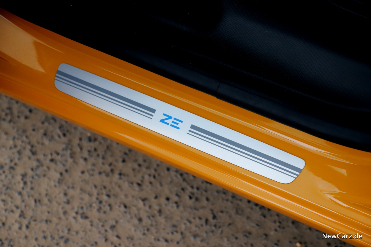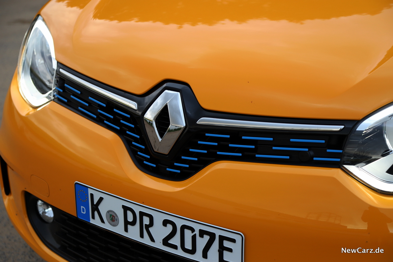 Im Vergleich zum herkömmlichen Twingo zeigt sich das E-Pendant nur minimal verändert. Im Frontgrill prangen nun kleine, blaue Lamellen, während ein blau-weißer Streifen die Seiten verziert. Ansonsten gibt es noch Hinweise in Form von kleinen Badges an der B-Säule und am Heck.