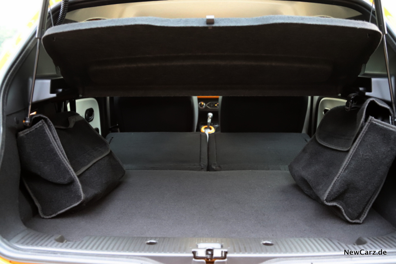 Die Platzverhältnisse sind vorne gut, wenngleich man hier sicher keine Langstrecken verbringen möchte, was wohl auch niemand tun wird. Kürzere Etappen lassen sich derweil problemlos abspulen. Hinten geht es erwartungsgemäß enger zu, für Personen bis 1,75 Meter sollte der Platz jedoch reichen. Der Kofferraum bietet ein Volumen von 219 Litern – abzüglich der Filztaschen, welche die Ladekabel beinhalten. Dank umlegbarer Rücksitze kann der Stauraum auf bis zu 980 Liter erweitert werden, was für den kleinen Einkaufstrip wohl langen sollte.