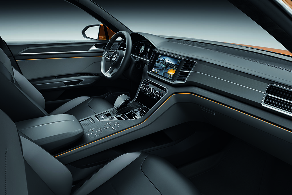 Mit dem CrossBlue Coupé zeigt VW ein interessantes SUV-Konzept. Der Wagen wirkt, obwohl gerade mal 3 kleine Zentimeter flacher als der hauseigene Touareg, sehr flach. Das sorgt für einen robusten aber gleichzeitig auch sportlichen Auftritt. Dieser Eindruck wird durch die großen 22 Zoll Leichtmetallfelgen mit einem Radstand von fast 3 m noch verstärkt. In Breite und Länge übertrifft der CrossBlue Coupé seinen Bruder um einiges (4,89 m Länge, 2,04 m Breite) und übernimmt somit die Rolle des größten SUV bei Volkswagen.