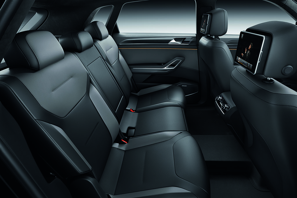 Im Innenraum findet sich Platz für fünf Passagiere. Der Kofferraum ist sehr groß. Je nach Bedarf kann dieser auf bis zu 1101 Liter Volumen ausgebreitet werden. Ansonsten zeigt sich das Interieur im typischen SUV-Ambiente. Formen, Farben und Materialien wirken zusammen und sorgen für ein schlichtes, gleichzeitig aber auch edles Auftreten. Ein kleines Gimmick: Damit es den Mitfahrern im Fond nicht langweilig wird, sind in den Kopfstützen der vorderen Sitze iPad Minis integriert – ob es das wohl in die Serienproduktion schafft?