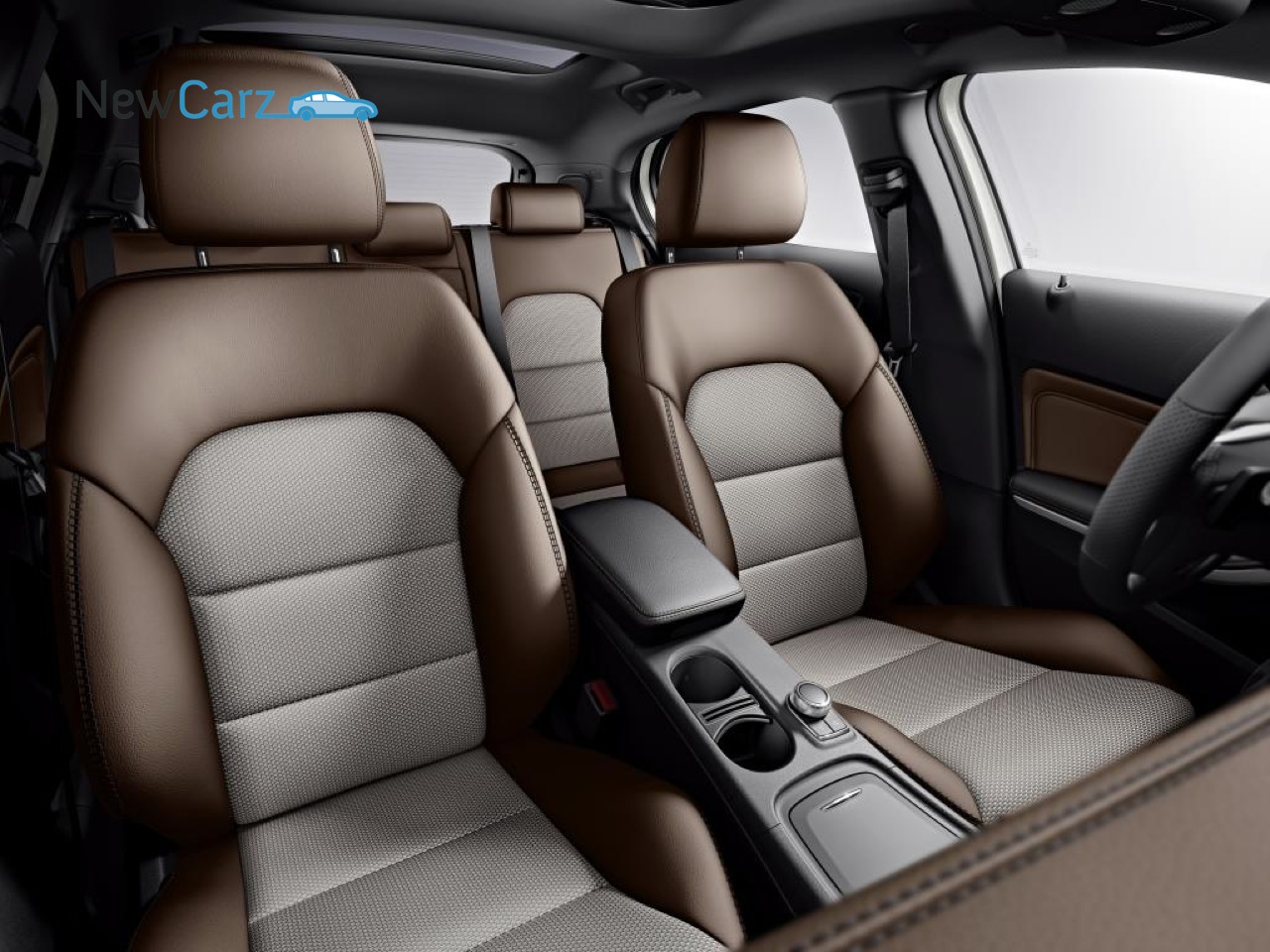Außerdem wird der nur 4,45 Meter kurze GLA mit Bi-Xenon-Scheinwerfern und 19 Zoll großen, schwarz glänzenden AMG-Leichtmetallrädern ausgestattet. Und passend zu den Felgen wird die gleiche Farbe in verschiedensten Außendetails fortgeführt, so sind zum Beispiel ab der B-Säule alle Scheiben dunkel getönt.