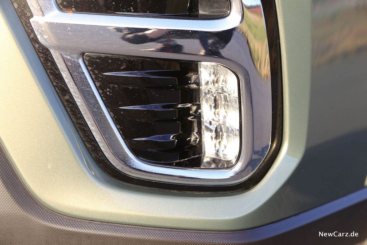 Ganz und gar Subaru – so bleibt der Forester auch als e-Boxer zu erkennen. Das liegt nicht allein an dem Markenlogo im Frontgrill, auf dem die Sterne des Sternzeichens der Plejaden auf traditionell blauem Grunde erscheinen.