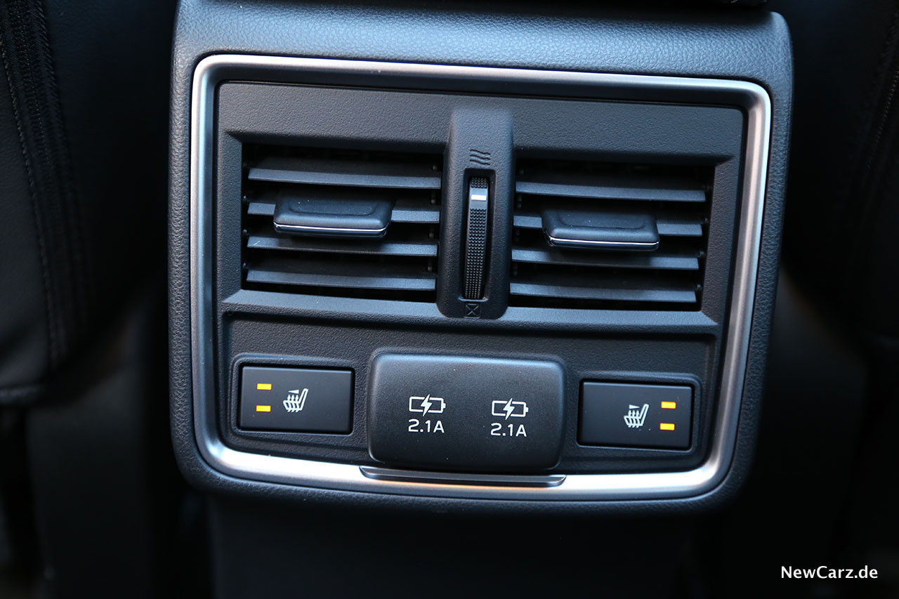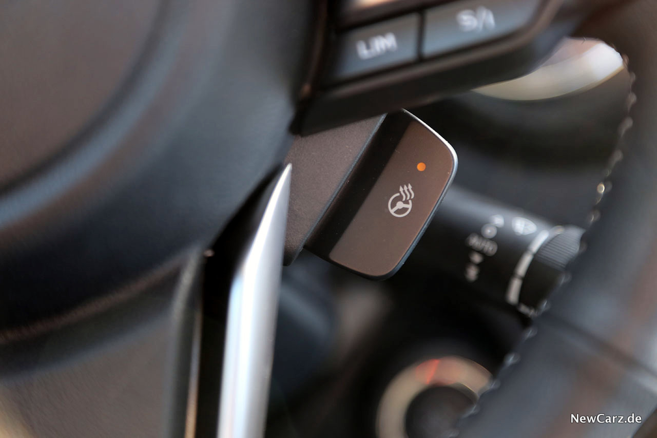 Die Lenkradheizung lässt den oberen Teil des Lenkradkranzes unbeachtet – dieser bleibt kalt. Die dreistufige Sitzheizung schafft es, die Sitze mäßig zu erwärmen, verfällt dabei allerdings stets in eine intervallartige Beheizung – es wird immer wieder spürbar kälter, bevor die Heizung wieder loslegt.