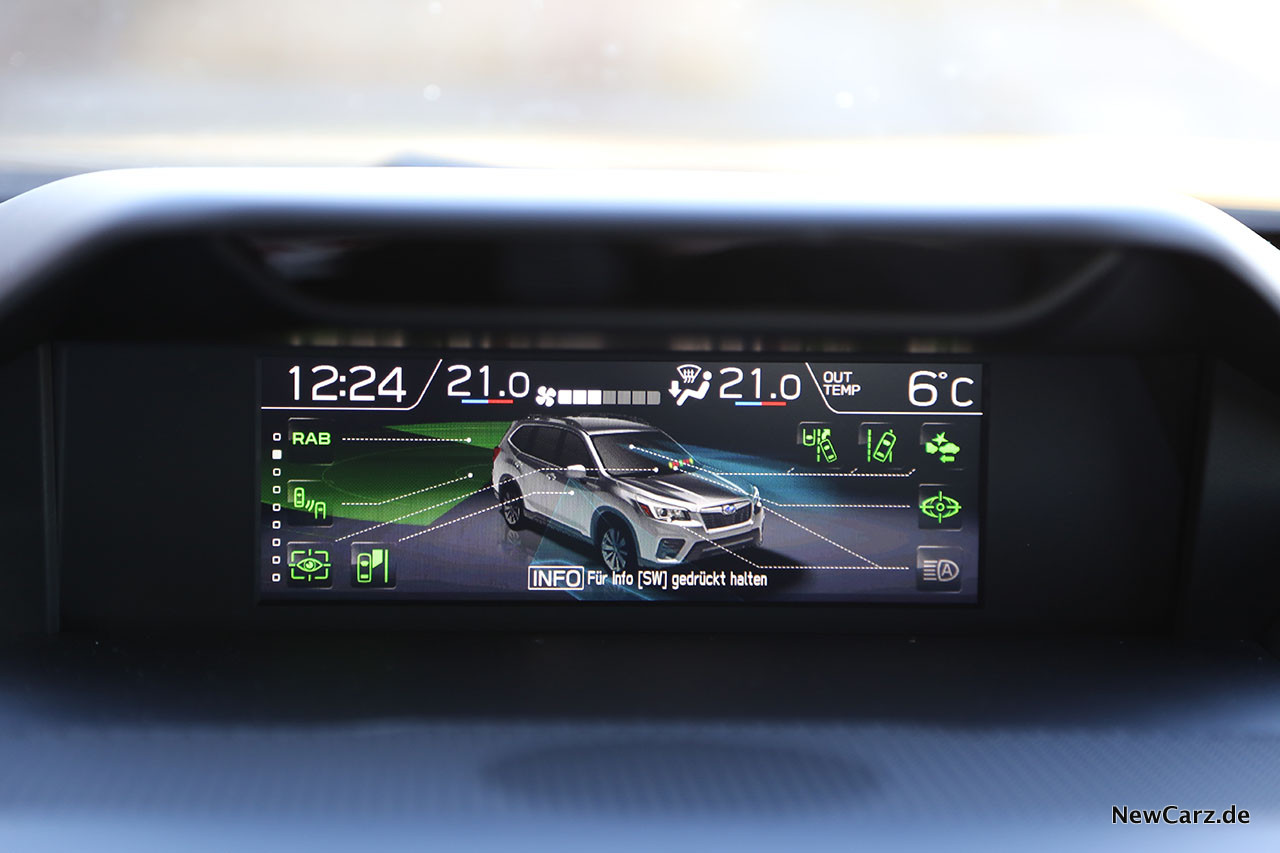Eine große Anzahl an Assistenten sorgt für die Sicherheit, zu denen auch das Eye-Sight-System mit den beiden Kameras hinter der Windschutzscheibe gehört. Diese verrichten mittlerweile eine erstklassige Arbeit, welche sich unter anderem in der sanften Art des Abstandstempomaten widerspiegelt. Es wäre hier allerdings angenehm, wenn der quittierende Piepton, der das Erkennen eines vorausfahrenden Fahrzeugs und das Verlassen des Erfassungsbereich durch ein Fahrzeug stetig begleitet, auch abgeschaltet werden könnte.