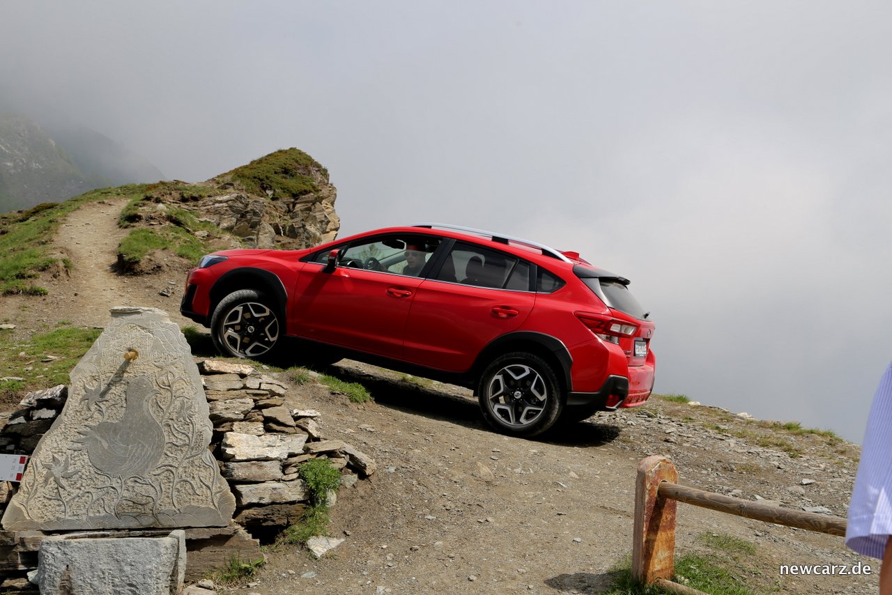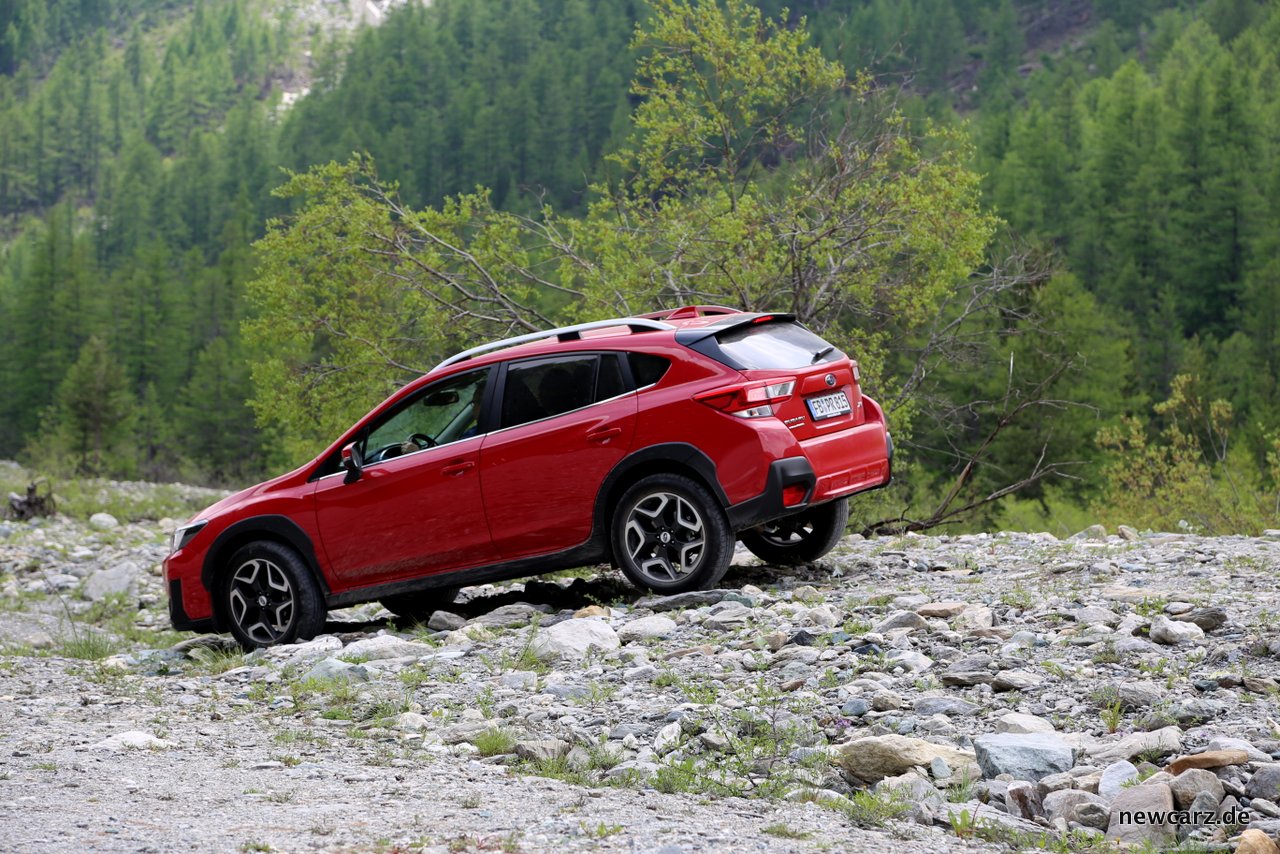 Über Stein und Geröll fuhren wir den kompakten und stylishen Crossover Subaru XV , dessen X-Mode Allrad-Assistenzsystem stets unterstützte und seine Karosseriesteifigkeit beeindruckte – selbst mit zwei Rädern in der Luft.