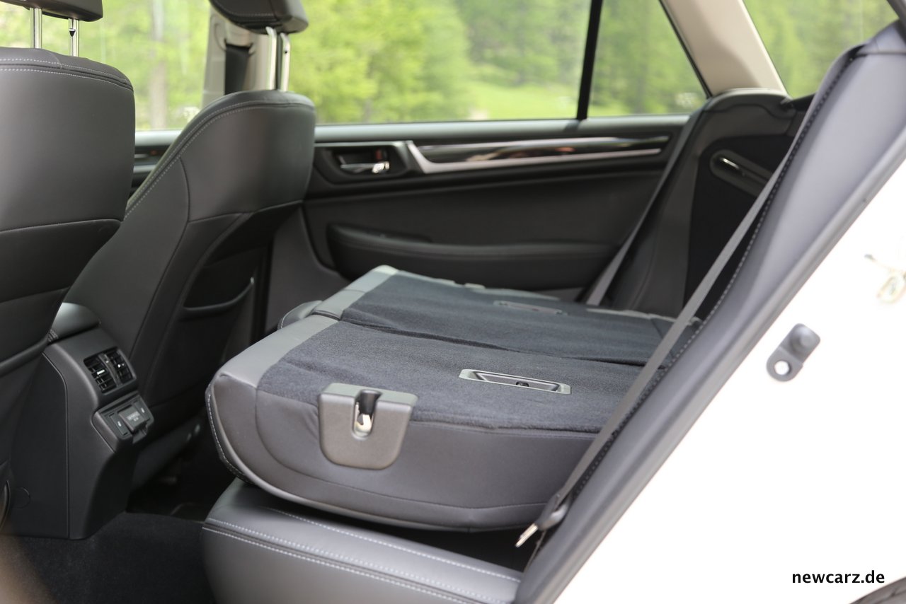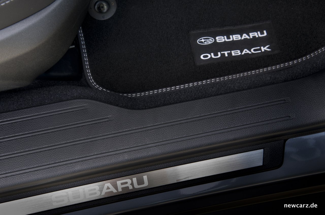 Das Heck des Outbacks von 2018 präsentiert keine Nova, aber eine niedrige Ladekante, eine elektrische Heckklappe und auf Wunsch eine Anhängerkupplung. Diese ist abnehmbar und kommt in Kombination mit Teppichmatten „Premium“ zum Preis von 792.00 Euro.