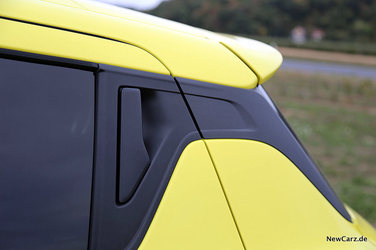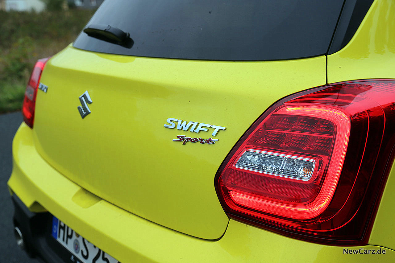 Der ohnehin schon recht breit wirkende Swift erhält zudem noch auf der Heckklappe den Namenszusatz in auffallendem Rot. So auf dicke Hose machend, fällt dann auch sehr schnell auf, dass sich immer wieder Leute nach dem Kampfzwerg in der Farbe eines Textmarkers umdrehen.
