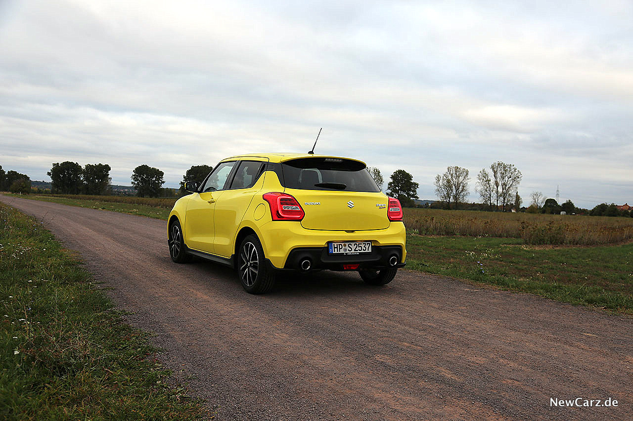 Der wohl bedeutendste Unterschied der Sportversion macht sich dann am Heck bemerkbar, wo beidseitig je ein dominantes Endrohr Aufschluss über die Ambitionen des Suzuki Swift Sport geben.