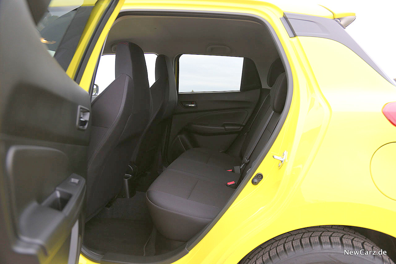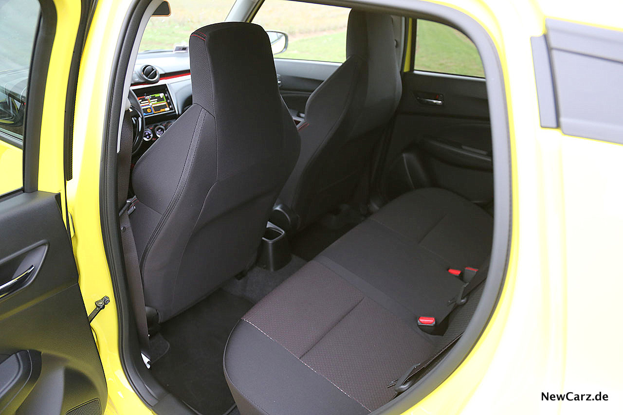 Doch auch die Sitzposition auf den vorderen Sitzen machen durch ihren noch stärker ausdefinierten Seitenhalt sofort klar, dass es sich hier um keinen Untersatz für die gemütliche Kaffeefahrt handeln kann. Auch wenn es hier ebenfalls etwas an Beinauflage fehlt, zeigen diese Gestühle noch etwas mehr Ergonomie als im Swift Hybrid.