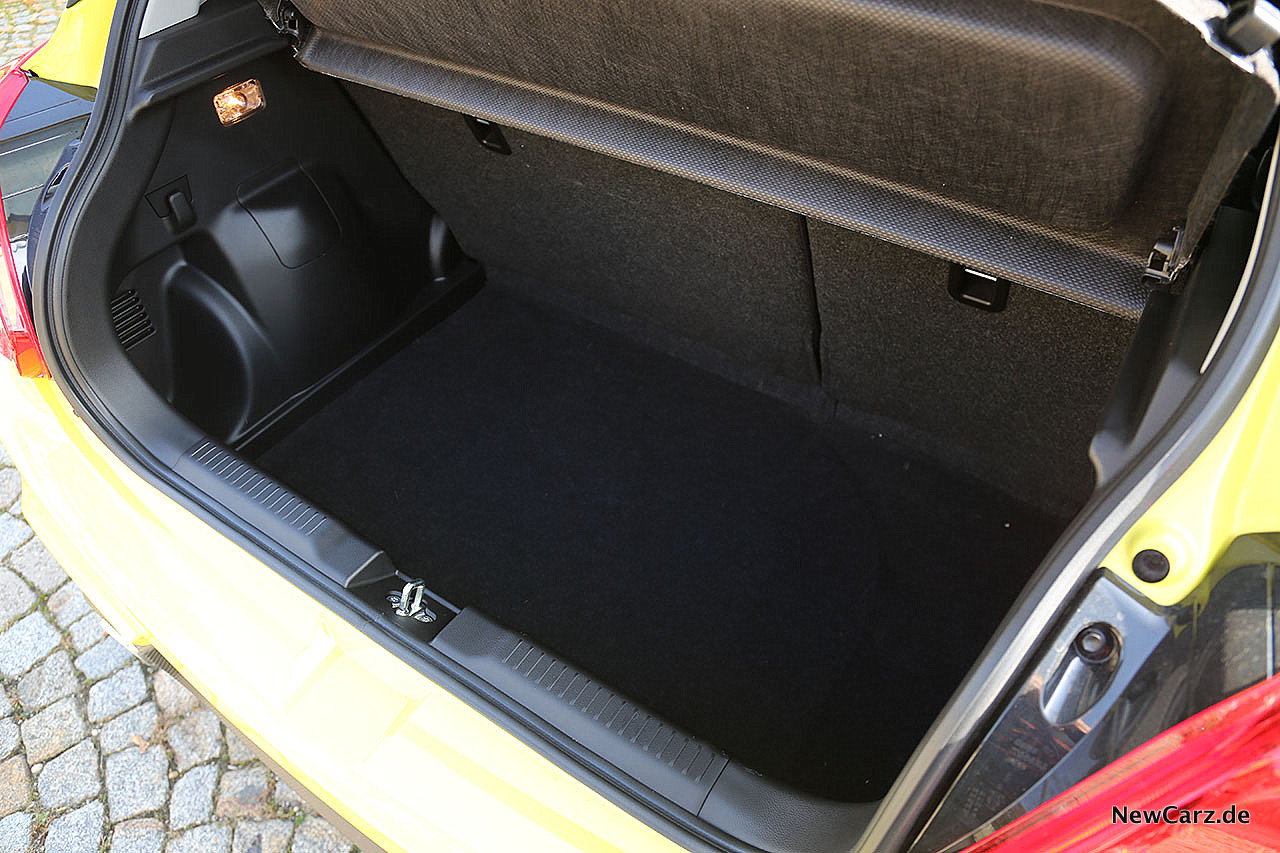 Die Platzverhältnisse gehen für einen Kleinwagen mehr als in Ordnung und erfreuten uns bereits in den anderen Swiftmodellen. Immer wieder erstaunlich: Die opulente Kopffreiheit. Als Fünftürer und mit unverändertem Kofferraum, welcher bis zu 947 Litern Fassungsvermögen vorweist, bleibt dabei die Alltagstauglichkeit in vollem Umfang erhalten.