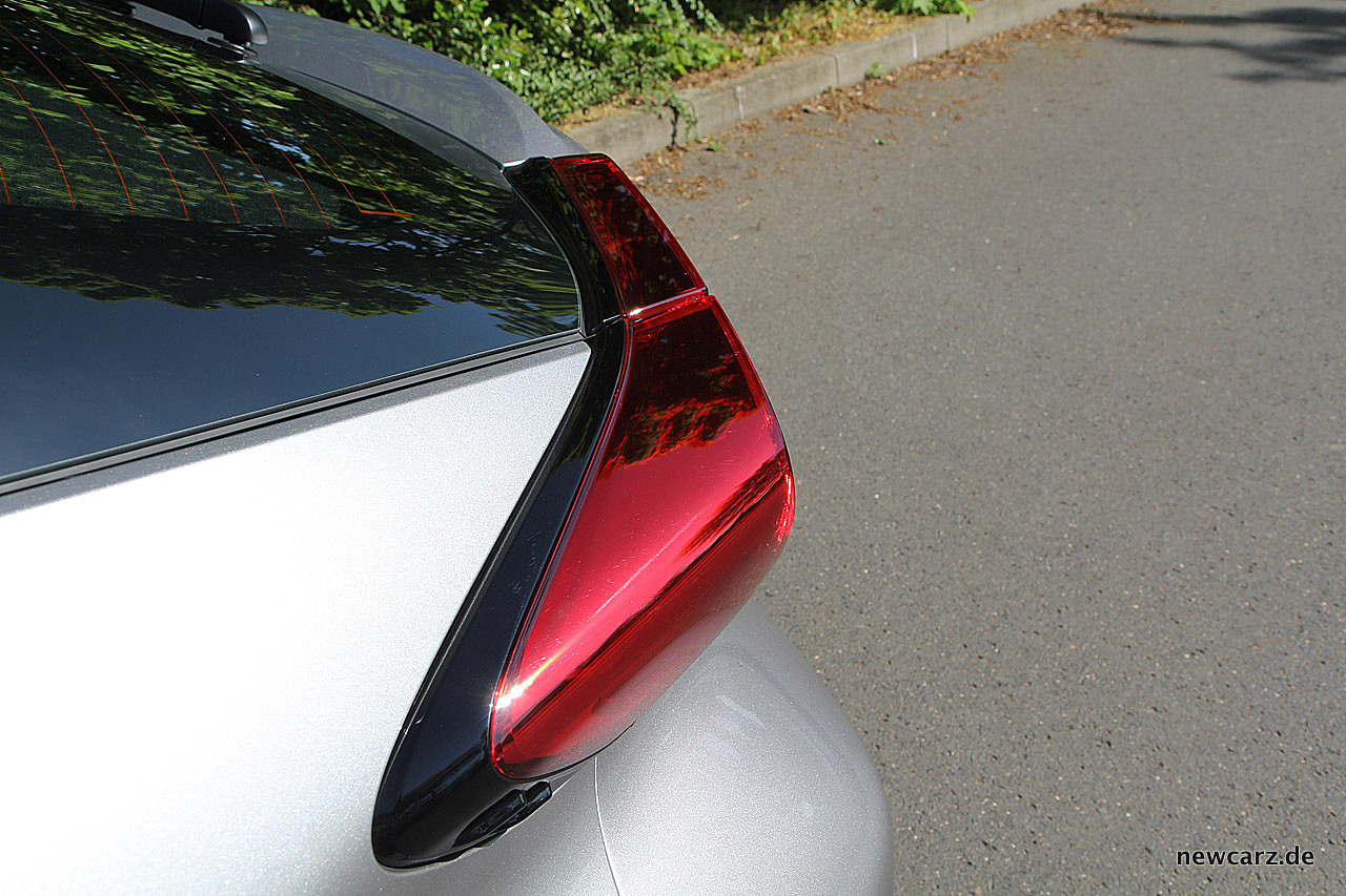 Das Heck wird durch einen massiven – jedoch absolut nicht plump erscheinenden – Dachheckspoiler und die weit herausstehenden, geometrisch fast abenteuerlich gestalteten Heckleuchten dominiert. Die Lichtsignatur unterscheidet sich auch hier zu Varianten mit LED-Paket, welche zusätzlich auf komplette LED-Technik zurückgreifen und sogar über ein dynamisches Blinklicht verfügen. In den hier verbauten Heckleuchten arbeiten ausschließlich die Bremsleuchten mit LED-Technik. Der gesamte Heckbereich erscheint sehr hoch und spendiert dadurch ein hohes Maß an SUV-Spirit.