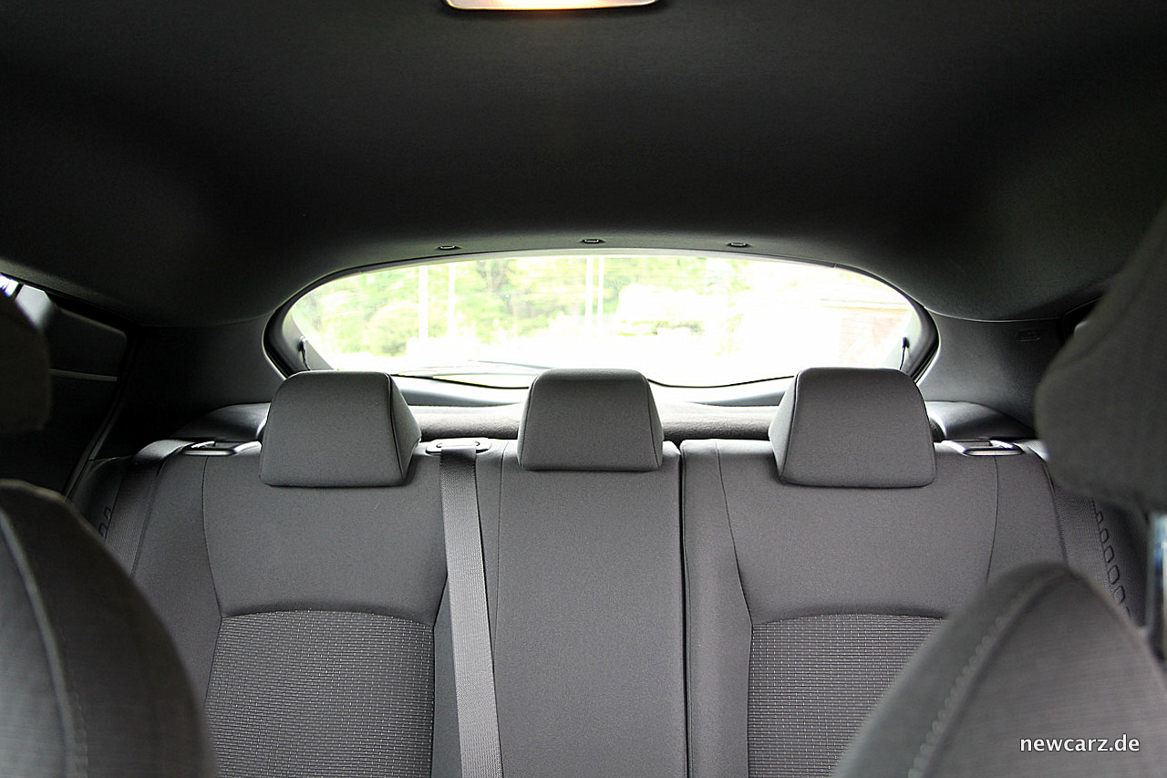 Die Platzverhältnisse nämlich sind auf den Vordersitzen noch großzügig, obwohl sie optisch aufgrund dieser Verwinklungen im Innenraum weniger Platz suggerieren, als letztendlich vorhanden ist. Hinten jedoch zollt man der designtechnischen Mannigfaltigkeit des Außenkleids deutlichen Tribut in Form von offensichtlichem Platzmangel.