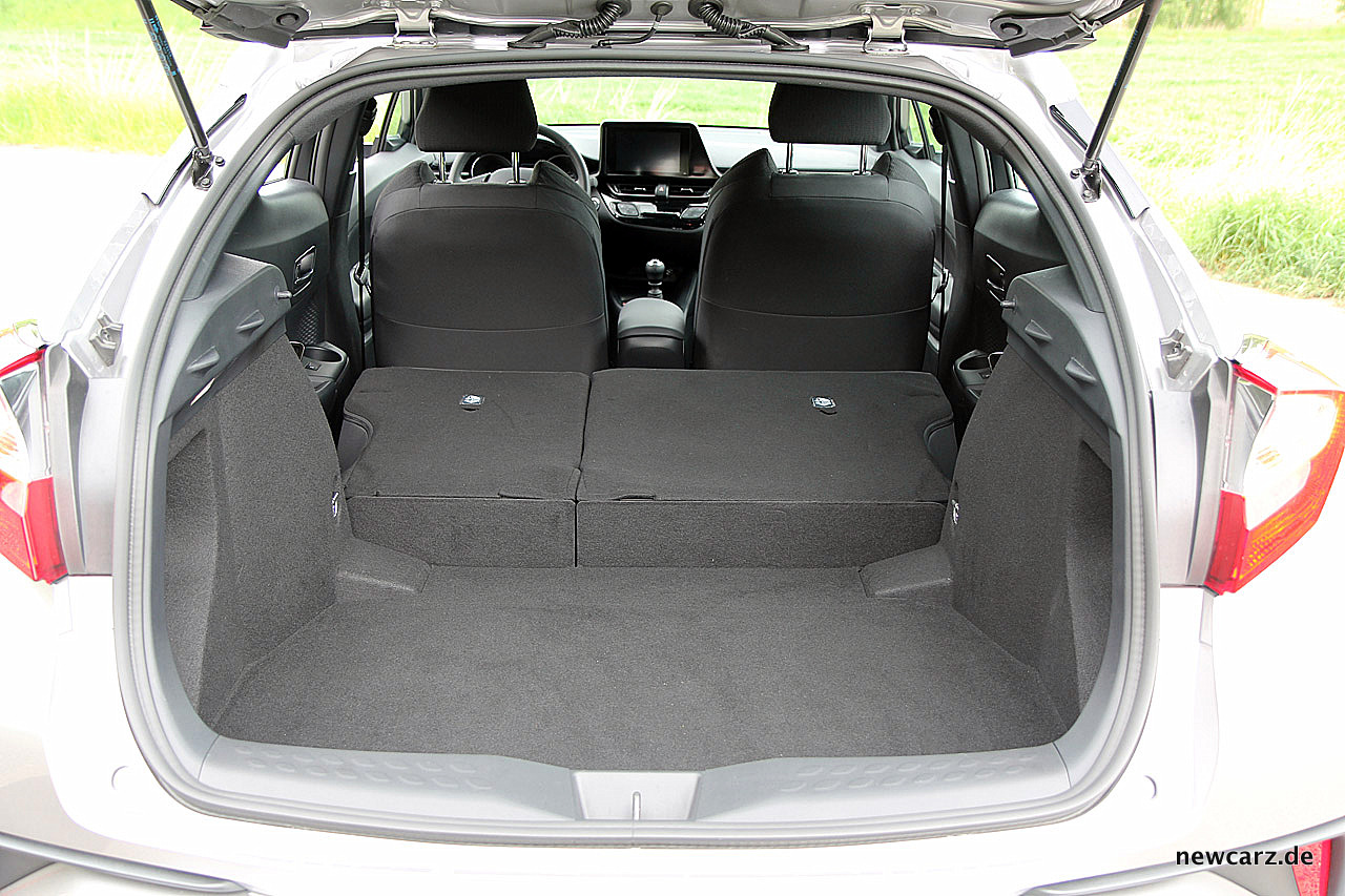 Unterm Strich bleibt es aber unterdurchschnittlich im Volumen, schließlich befindet sich der Toyota C-HR abmessungstechnisch fast auf Augenhöhe mit einem Nissan Qashqai.