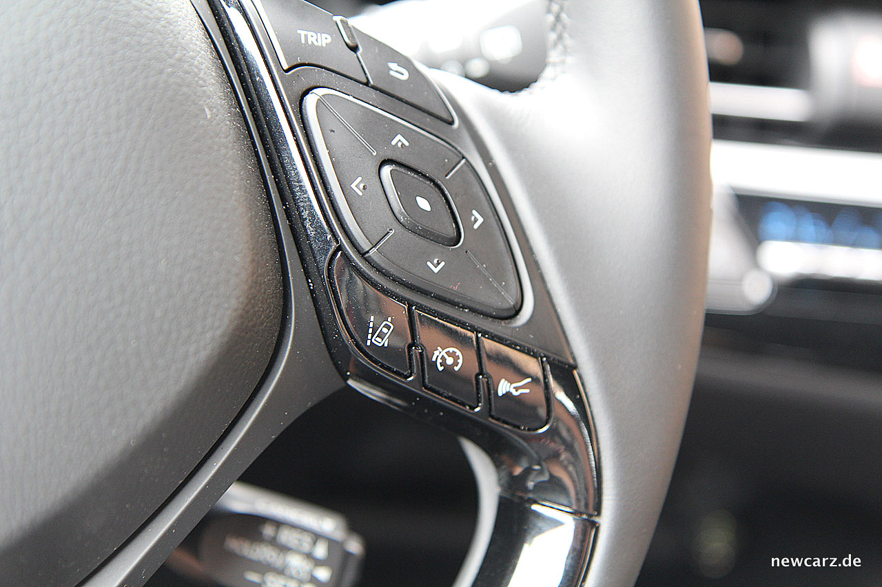 Im Toyota C-HR agiert ein Spurhalteassistent, welcher etwaige Lenkkorrekturen dezent und dadurch ohne störend zu wirken, hilfreich durchführt. Durch diese nur leichte Korrektur werden Unsicherheiten – beispielsweise in Baustellen – sicher vermieden. Zudem werden die jeweiligen Gegebenheiten und Aktionen dieses Assistenten detailliert im entsprechend eingestellten Kombiinstrument angezeigt.