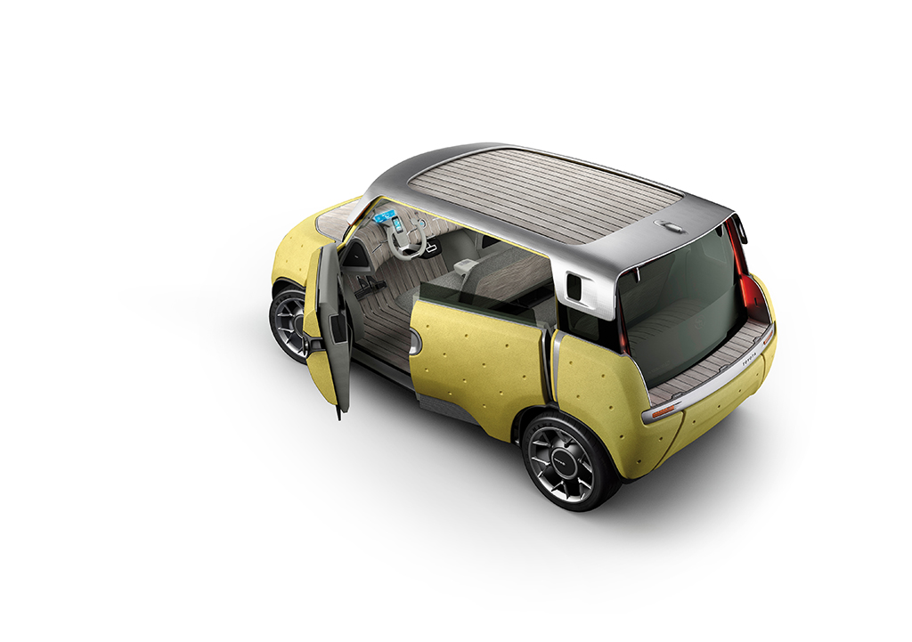 Der Toyota ME.WE sieht zunächst aus wie das Modell eines Miniatur-Minis. Doch man merkt schnell: Toyota meint das wirklich ernst. In Zusammenarbeit mit dem Industrie-Designer J.M. Maussaud ist ein gerade einmal 750 Kilogramm schwerer Wagen entstanden, dessen Karosserie komplett aus Polypropylen und Aluminiumrohrrahmen besteht. Polypropylen würde ein Laie als Plastik beschreiben, dabei ist der zu der Gruppe der Thermoplasten gehörende Stoff sehr widerstandsfähig und dennoch extrem leicht. Personalisierbarkeit ist dadurch kein Problem. Der Toyota ME.WE kann ein Pickup, ein Cabrio, ein Offroader oder ein kleiner Flitzer sein.